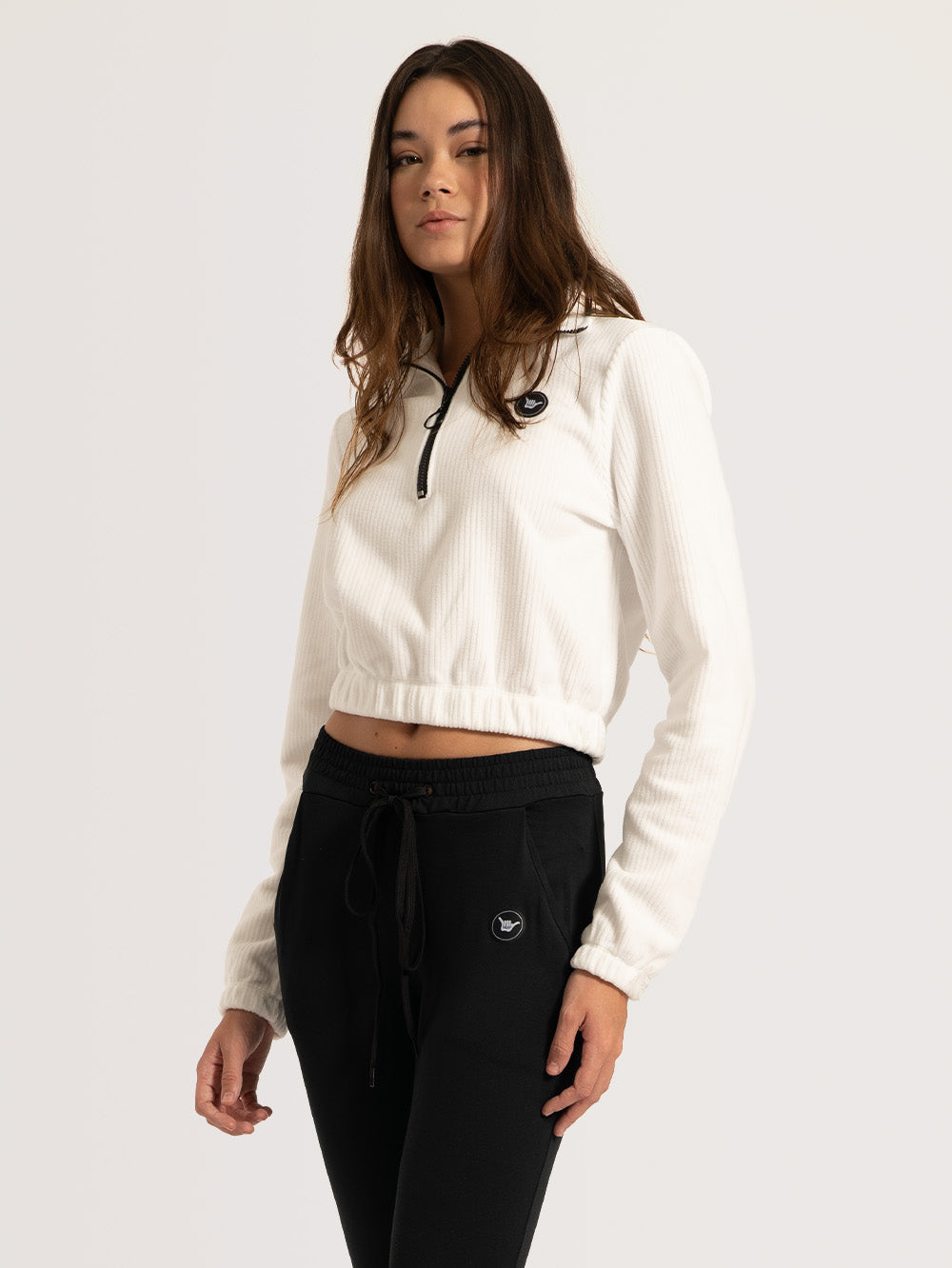 - Zíper frontal na gola