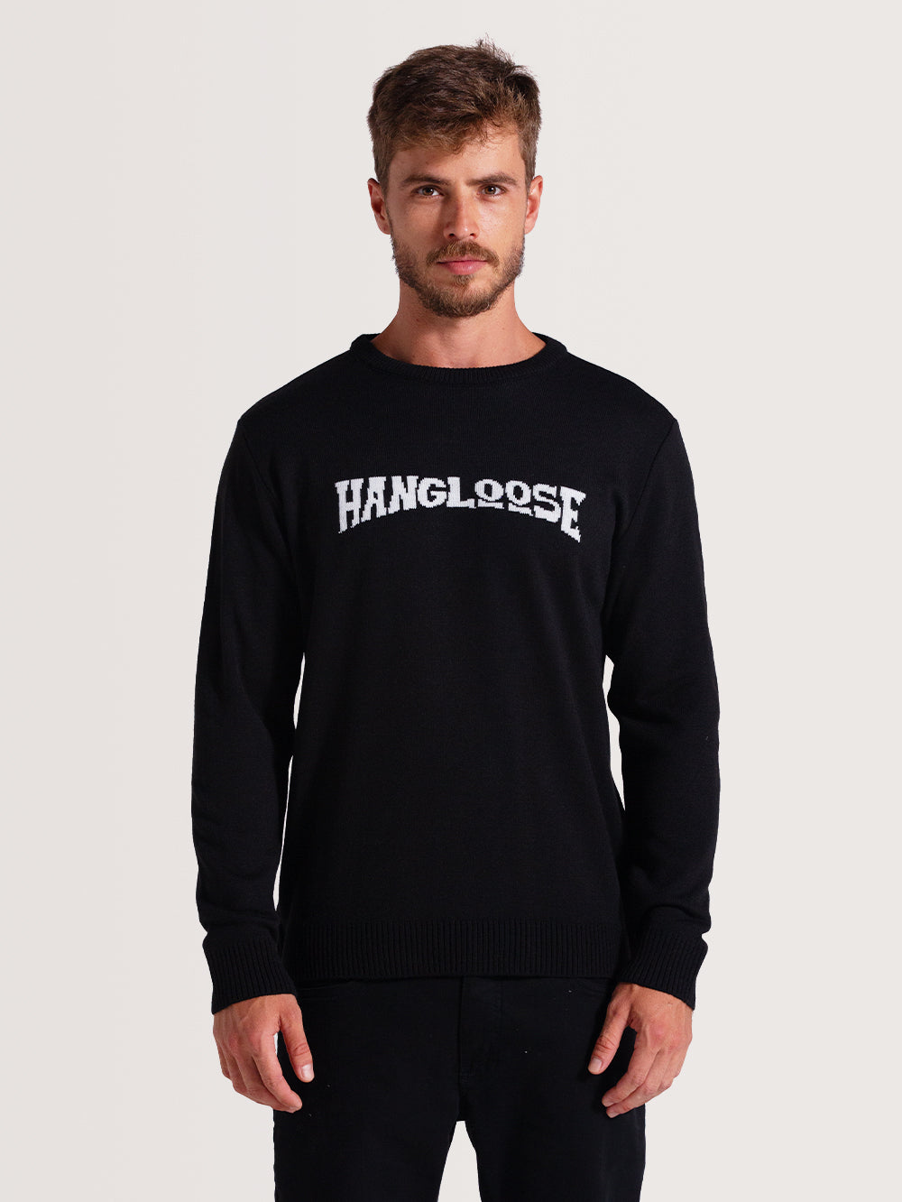 O suéter em tricô preto masculino com manga longa Typo da Hang Loose é ideal para os dias de inverno. Com modelagem careca, seu caimento é leve e elegante. Aproveite a versatilidade desse tricot masculino da Hang Loose.