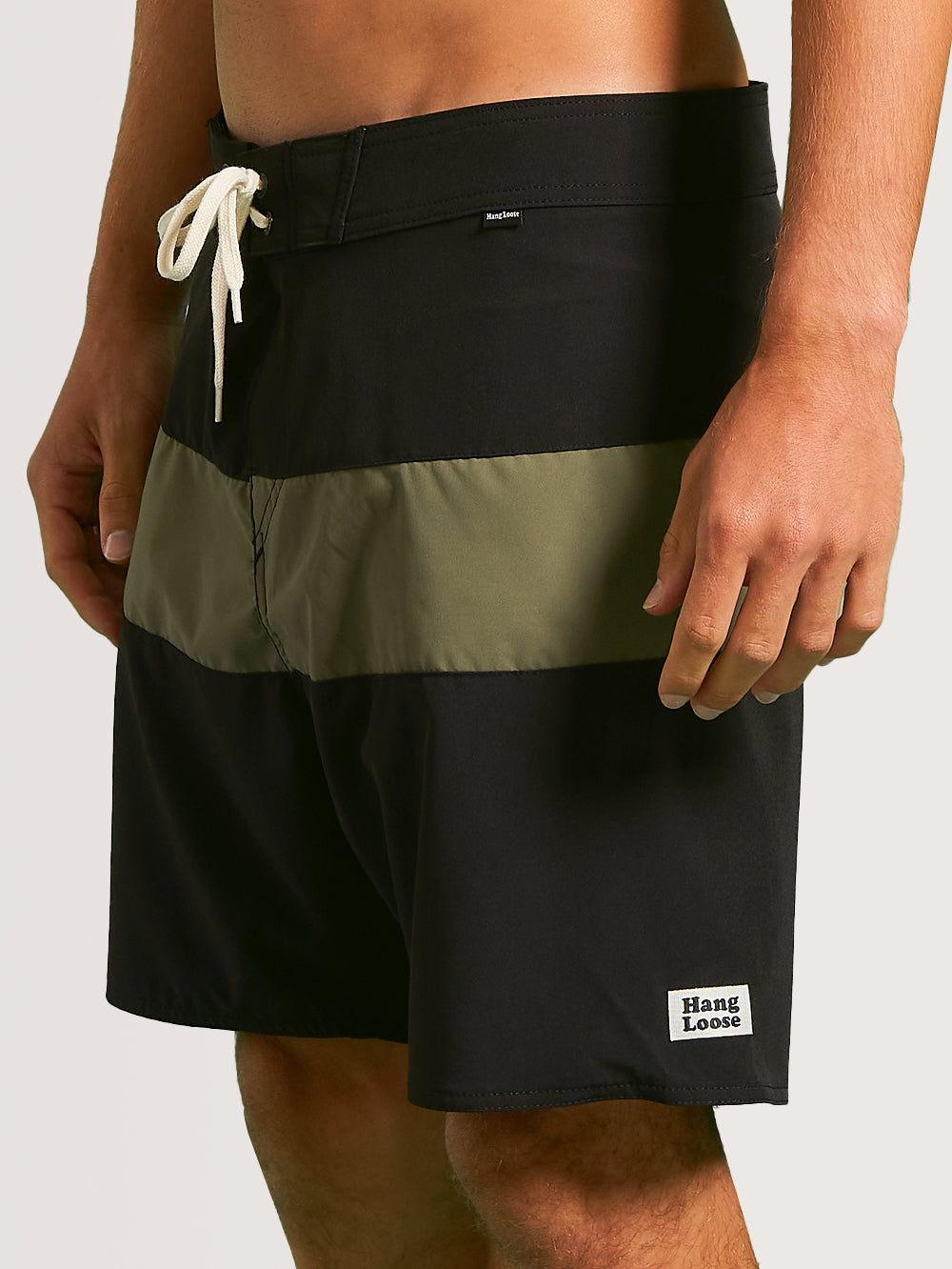 Boardshort Hang Loose Oldscool 18", possui ilhós personalizado, cós com ajuste de cordão frontal, etiqueta Hang Loose, recorte faixa bicolor e bolso traseiro com lapela contraste. Confeccionado em tecido 4 Way Stretch.