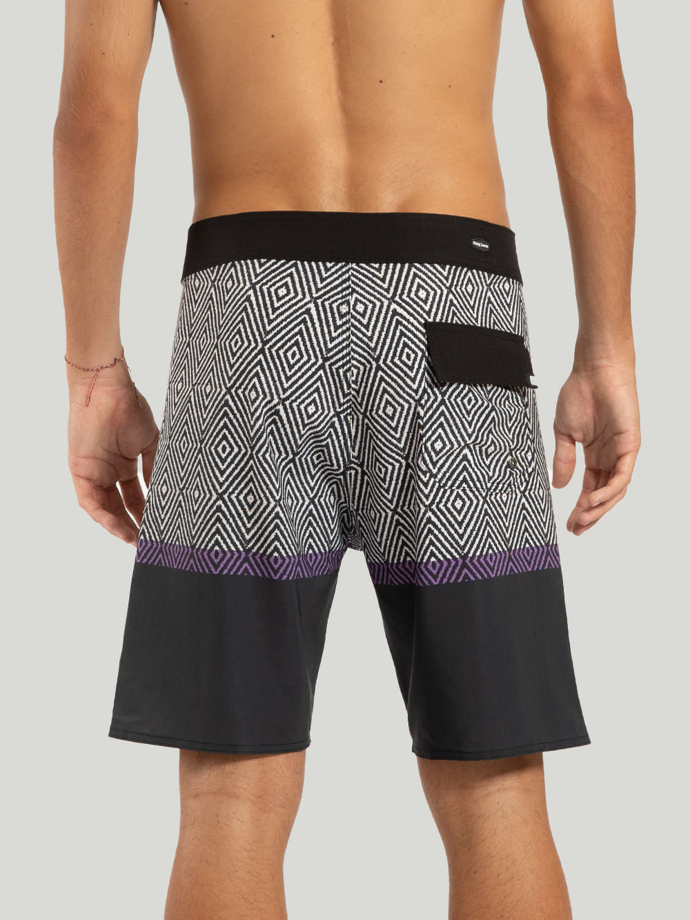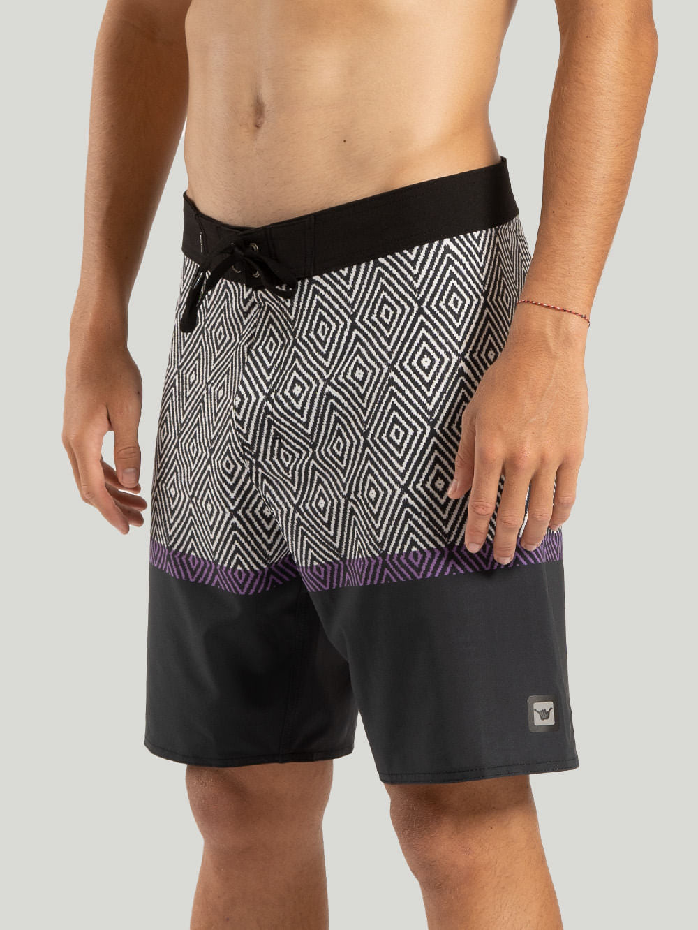 Nosso Boardshort Hang Loose Opticalblock, confeccionado 4 way stretch estampado. Possui 20 polegadas, cós com ajuste de cordão, ilhós personalizado e etiquetas Hang Loose.