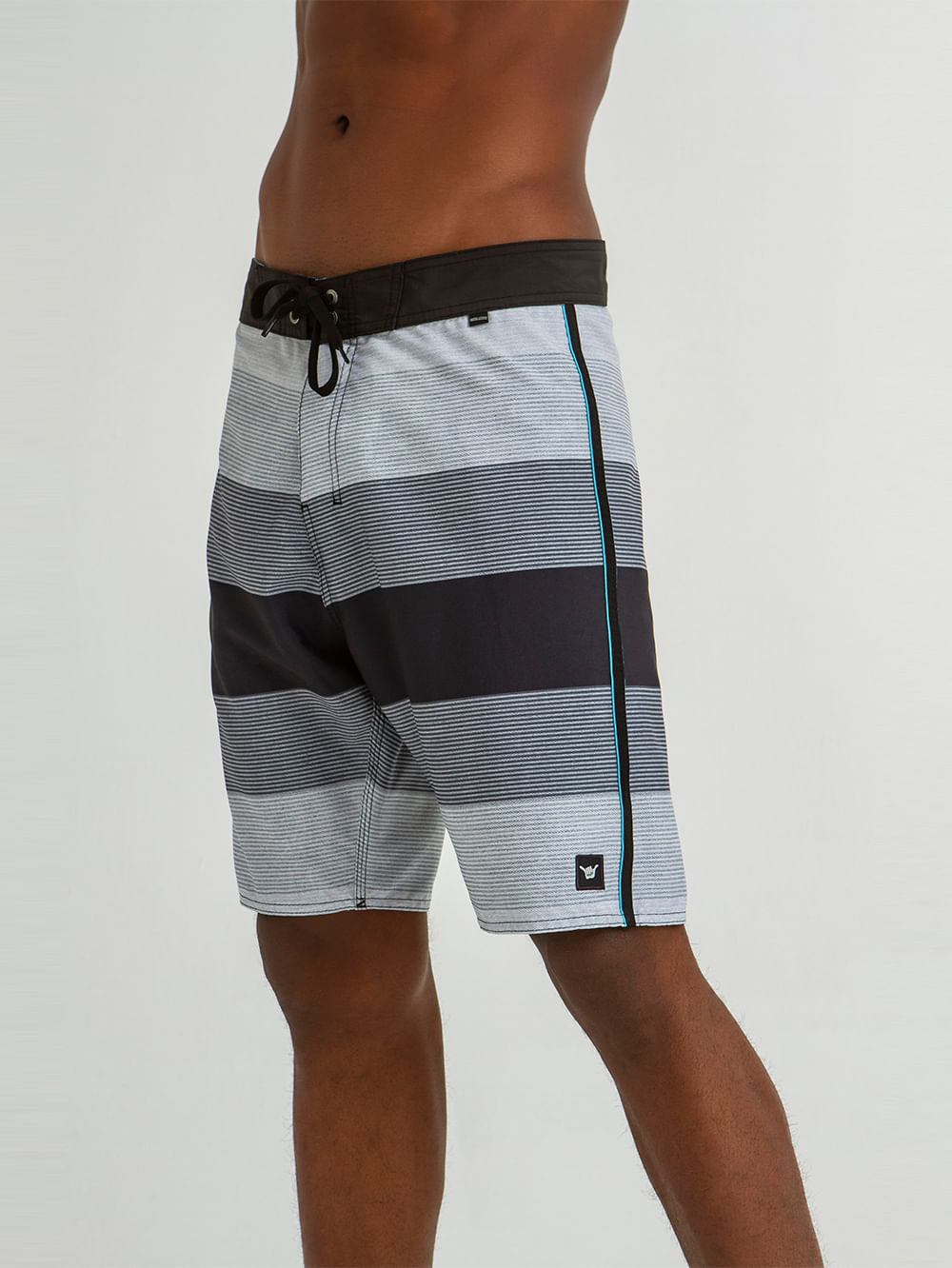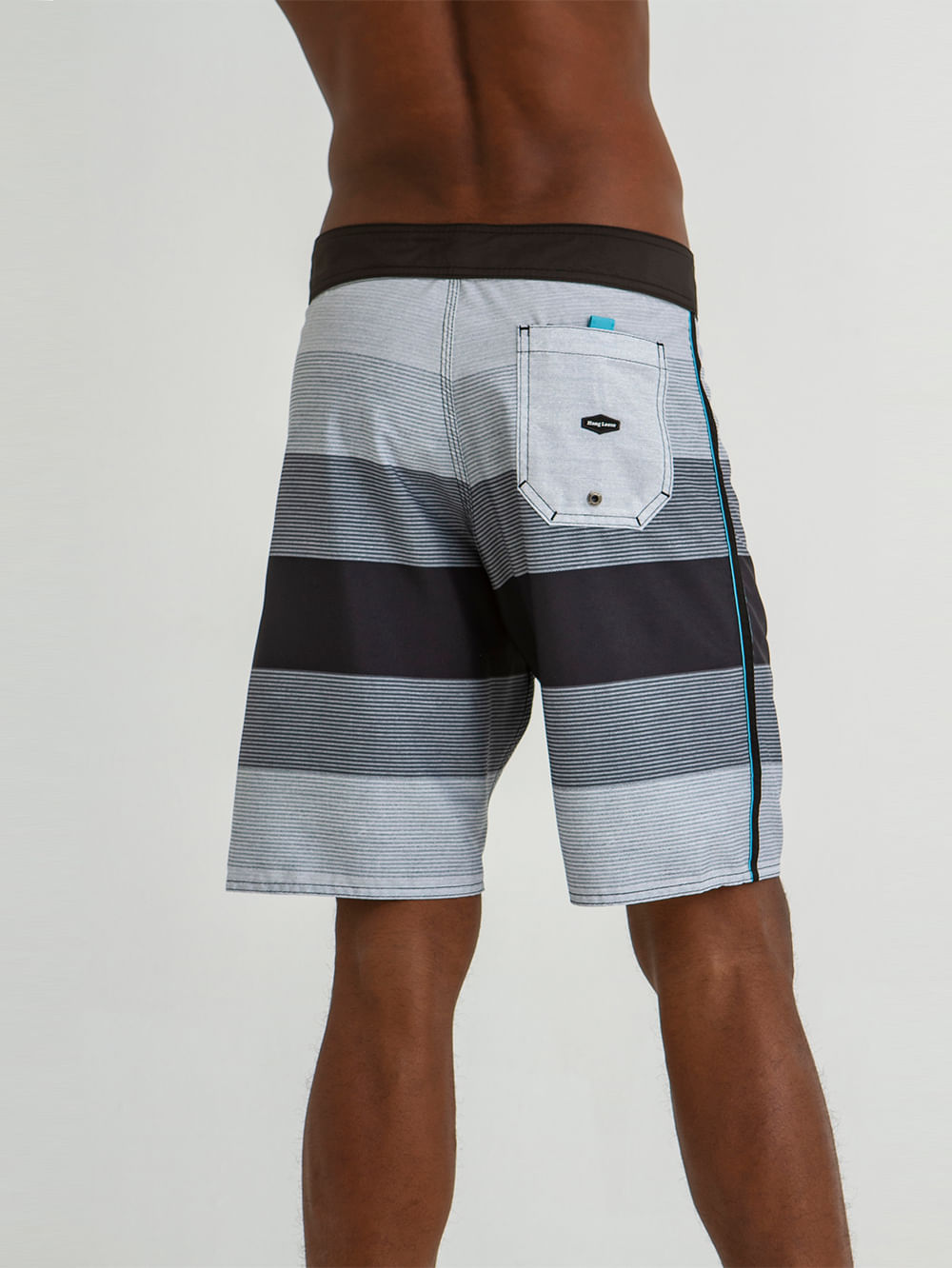 Nosso Boardshort Hang Loose Stripe, confeccionado em tecido 4 way stretch. Possui 20 polegadas, faixas laterais estampadas com bolso encaixado e zíper, cós contrastante com ajuste de cordão e ilhós personalizado.