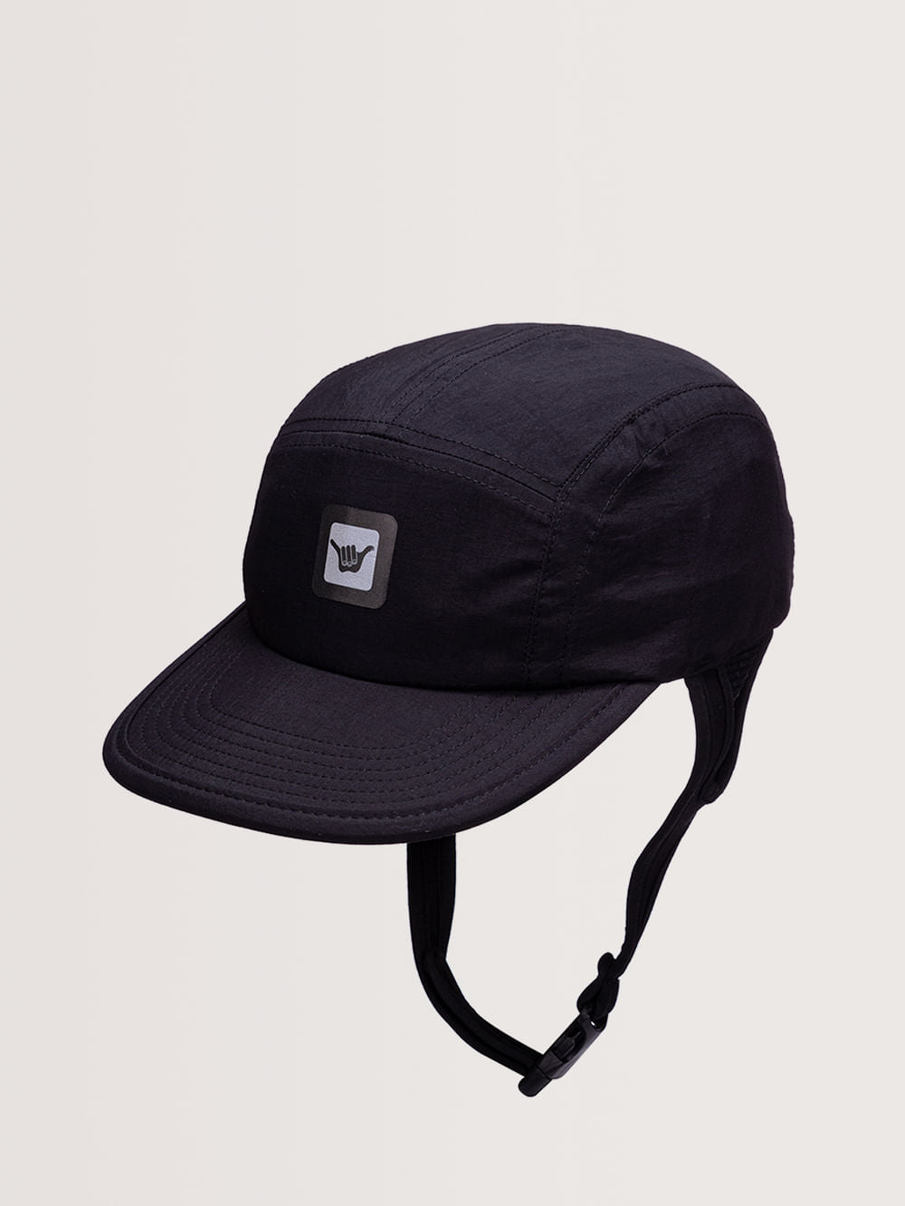 Boné Hang Loose Surf, possui modelagem surf, ajuste e regulagem para fixar as laterais e traseira, etiqueta heat transfer frontal e etiqueta traseira aplicada.