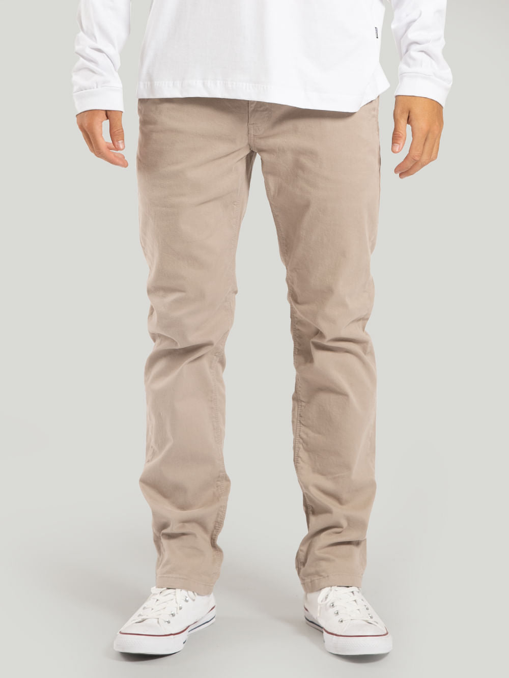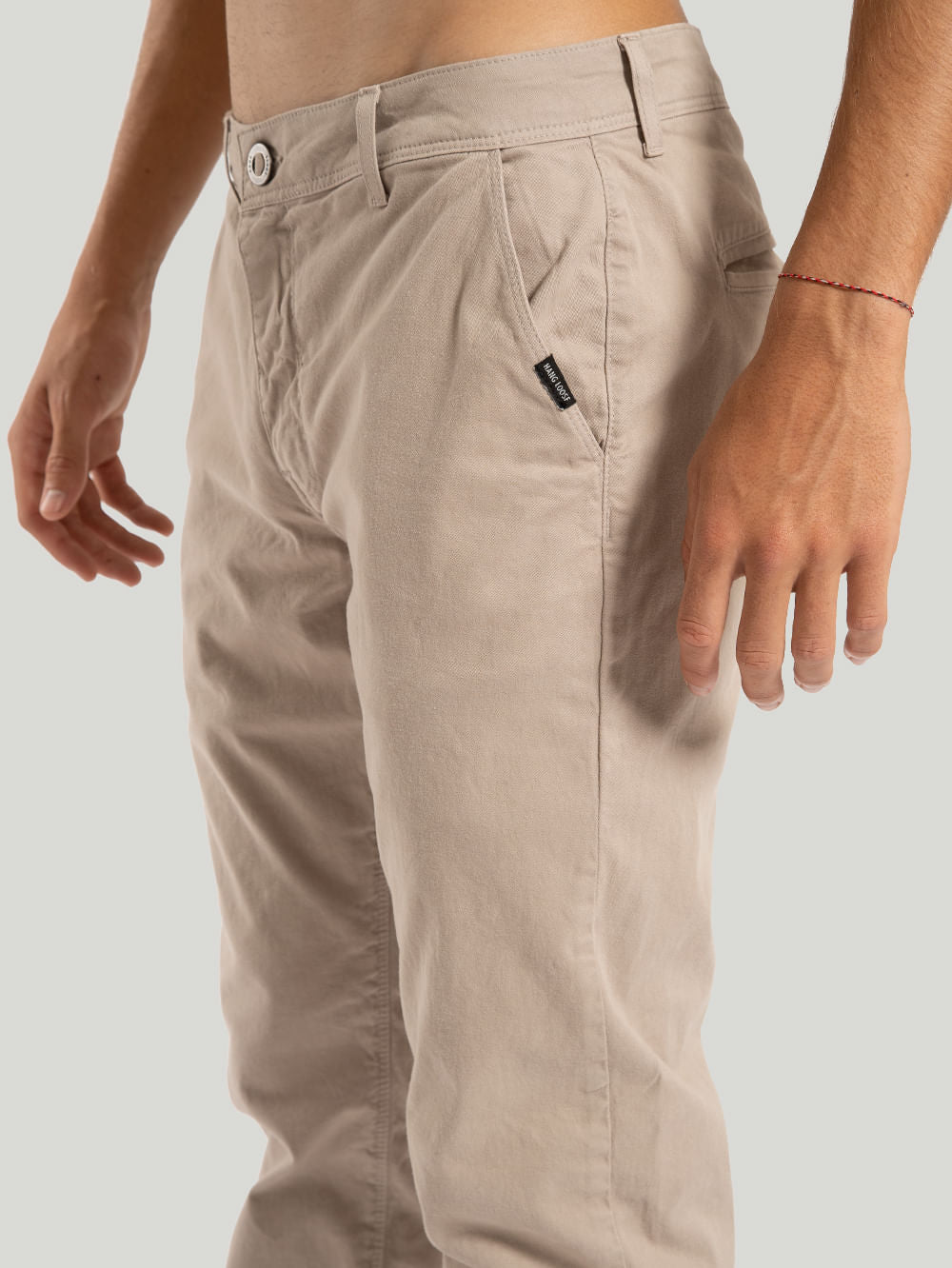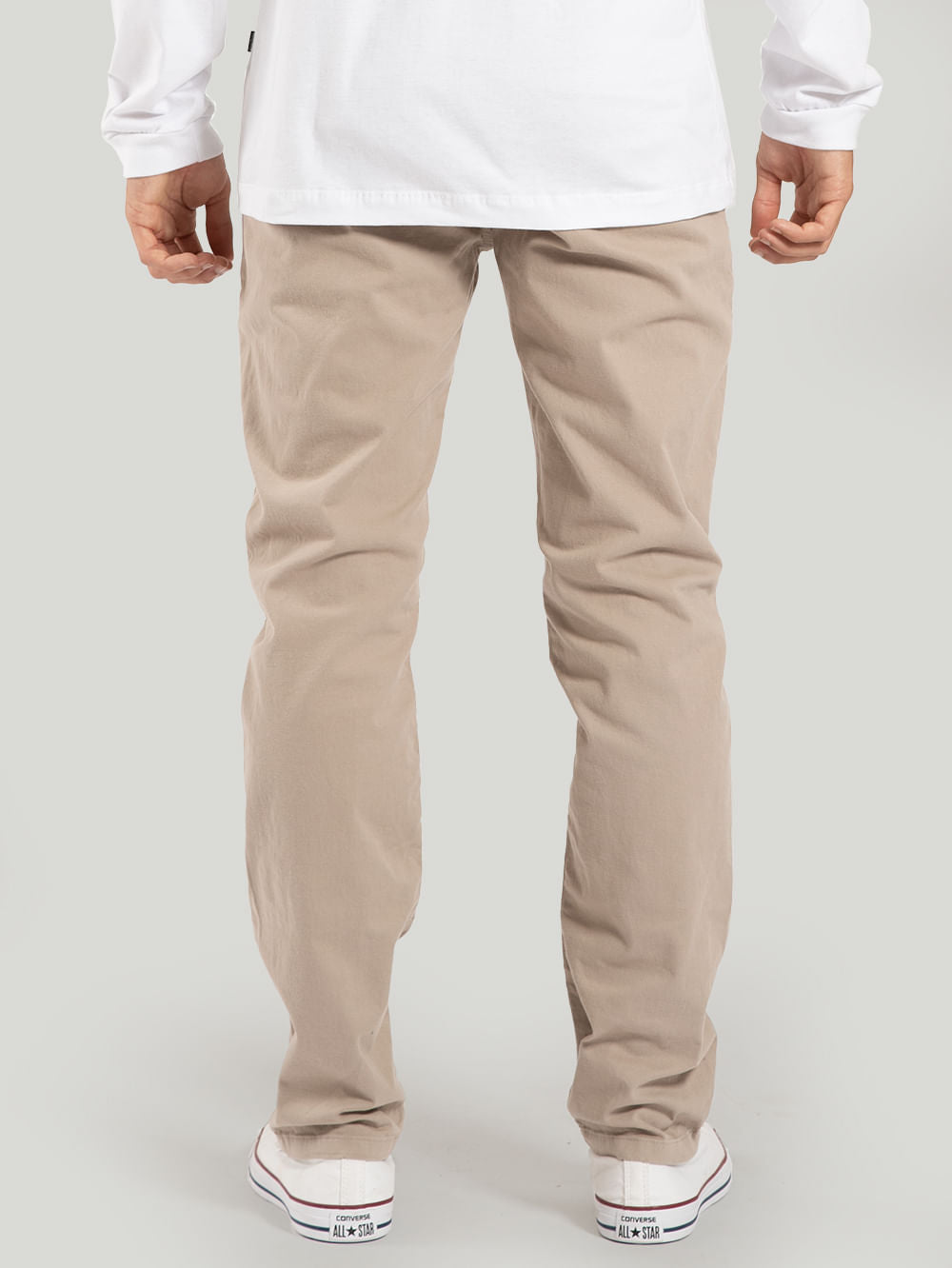 A Calça Hang Loose Waisted é feita em tecido sarja com algodão. Possui modelagem chino, com bolso traseiro embutido e aplicação de etiqueta Hang Loose no bolso traseiro.