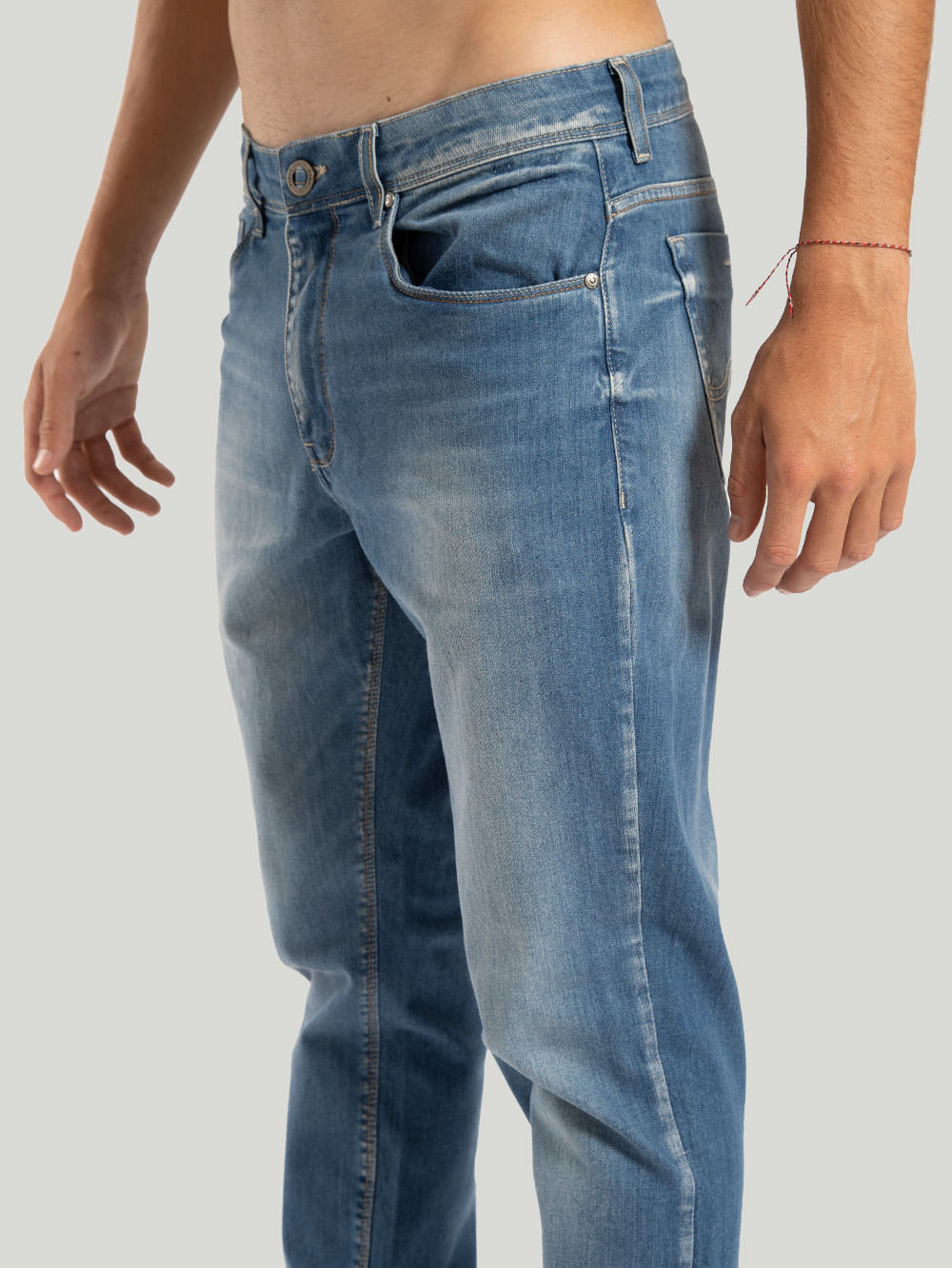 A Calça Jeans Hang Loose Ray é feita em tecido jeans com elastano. Possui modelagem five pockets, lavanderia lixada com used e aplicação de etiquetas Hang Loose no bolso relógio e traseiro.