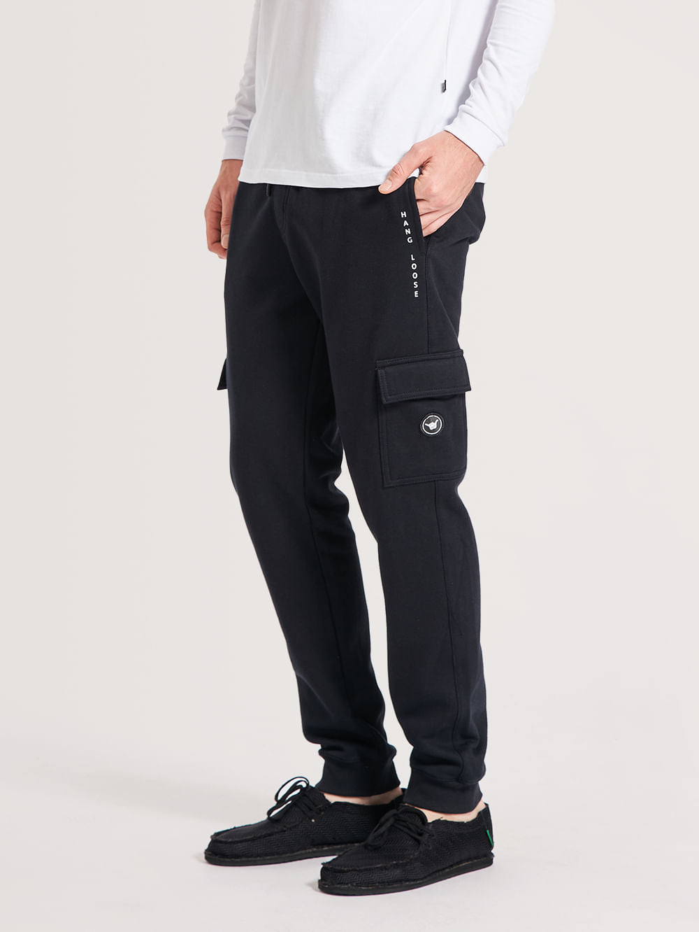 Calça Moletom Hang Loose Cargo, possui cintura com elástico e cordão de ajuste, bolsos frontais, estampa em silk frontal, bolso lateral com lapela e aplicação de etiquetas Hang Loose. Confeccionado em tecido moletom felpado 240 gramas.