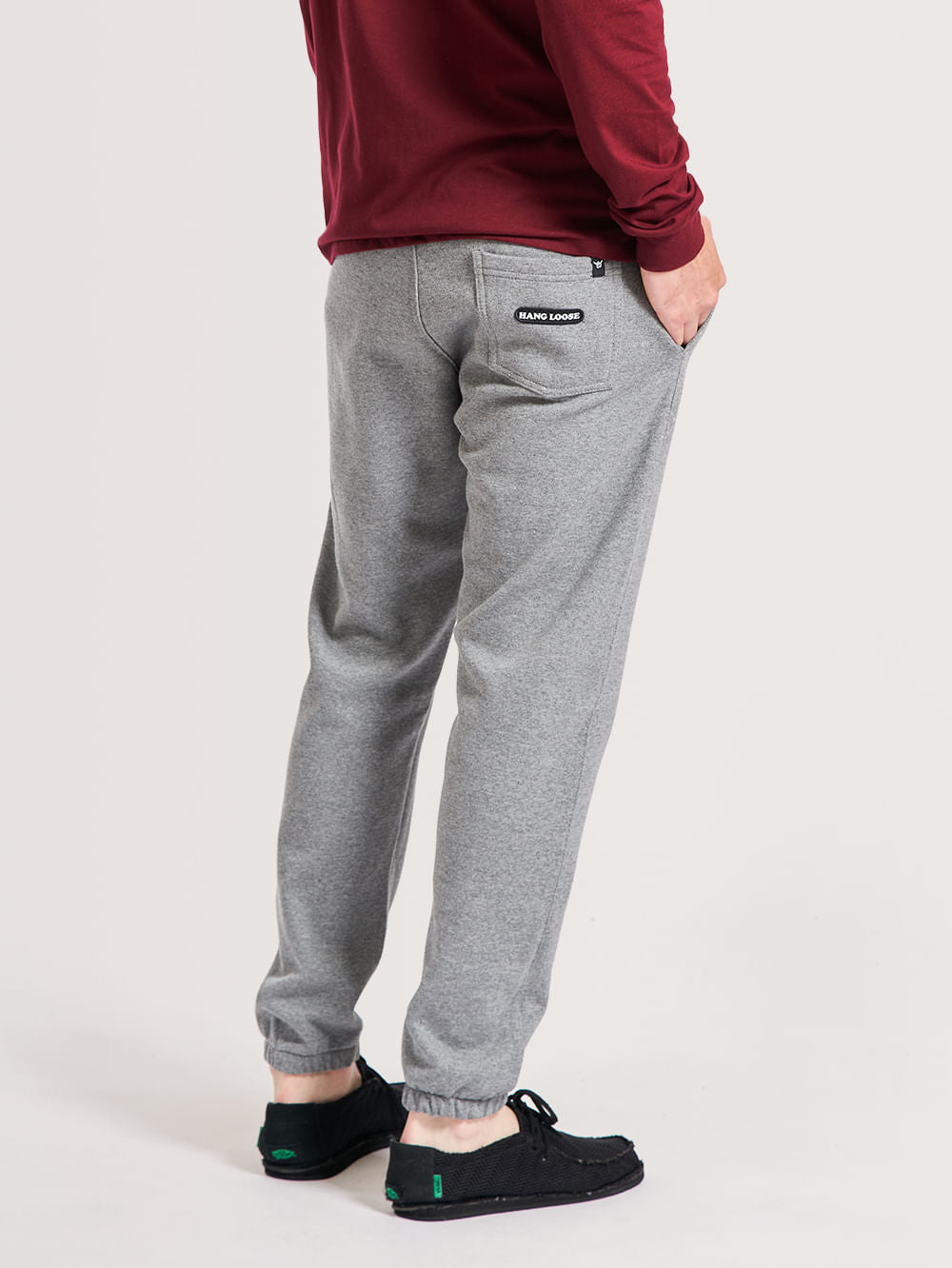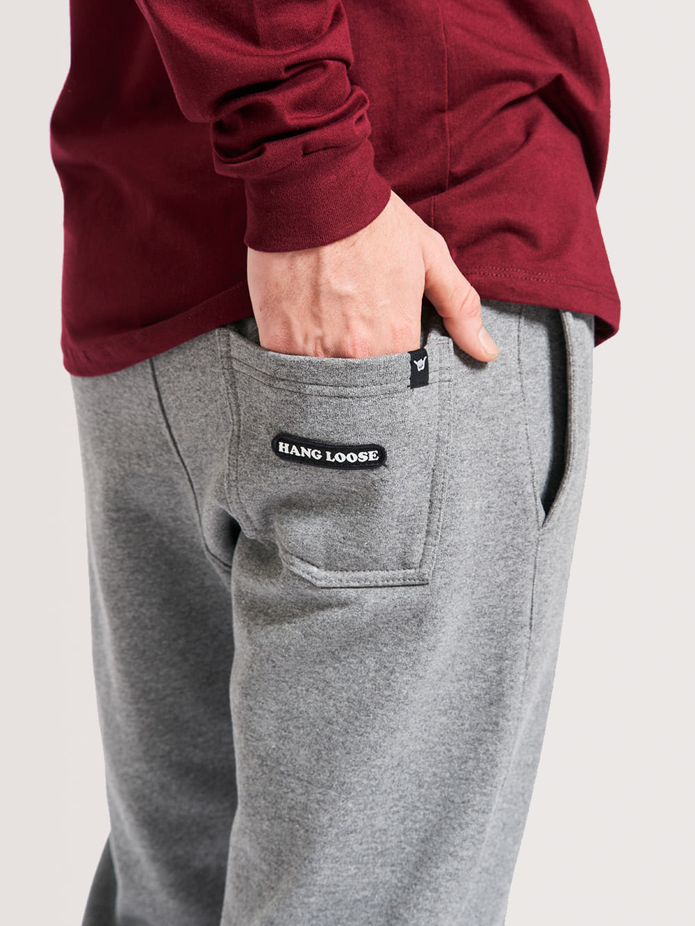 Calça Moletom Hang Loose Sound, possui cintura com elástico e cordão para ajuste, bolsos frontais, bolso traseiro com aplicação de etiqueta e etiquetas Hang Loose. Confeccionado em tecido moletom felpado grosso.