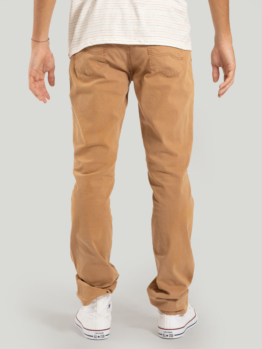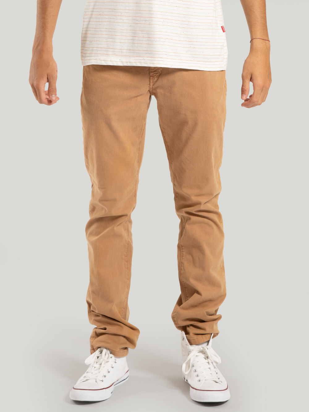 A Calça Hang Loose Cross é feita em tecido sarja com algodão. Possui modelagem five pockets, bolsos traseiros e aplicação de etiqueta no bolso relógio.