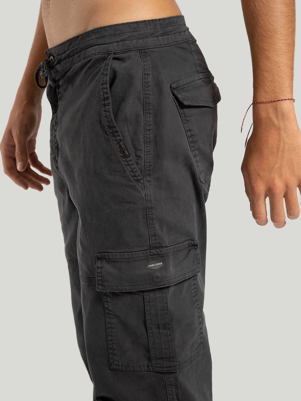 A Calça Hang Loose Heavy é feita em tecido sarja com algodão. Possui modelagem cargo, bolsos traseiros e aplicação de etiqueta Hang Loose no bolso lateral.