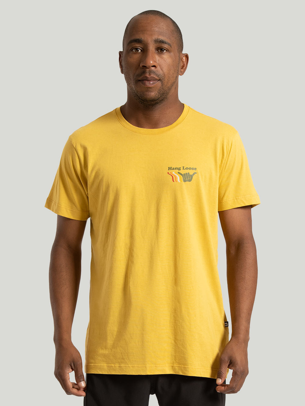 Camiseta Hang Loose Colors, confeccionada em tecido ½ malha 30/1. Possui estampa frontal e nas costas em silk e etiquetas Hang Loose.