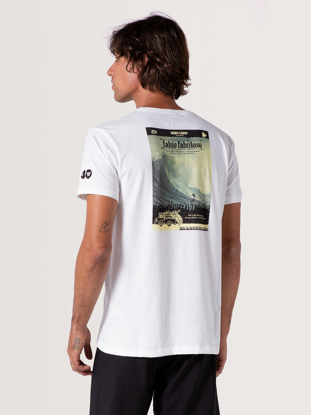 Camiseta Hang Loose Fabio Fabuloso. Possui print interno e estampa em silk frontal, costas e nas mangas.