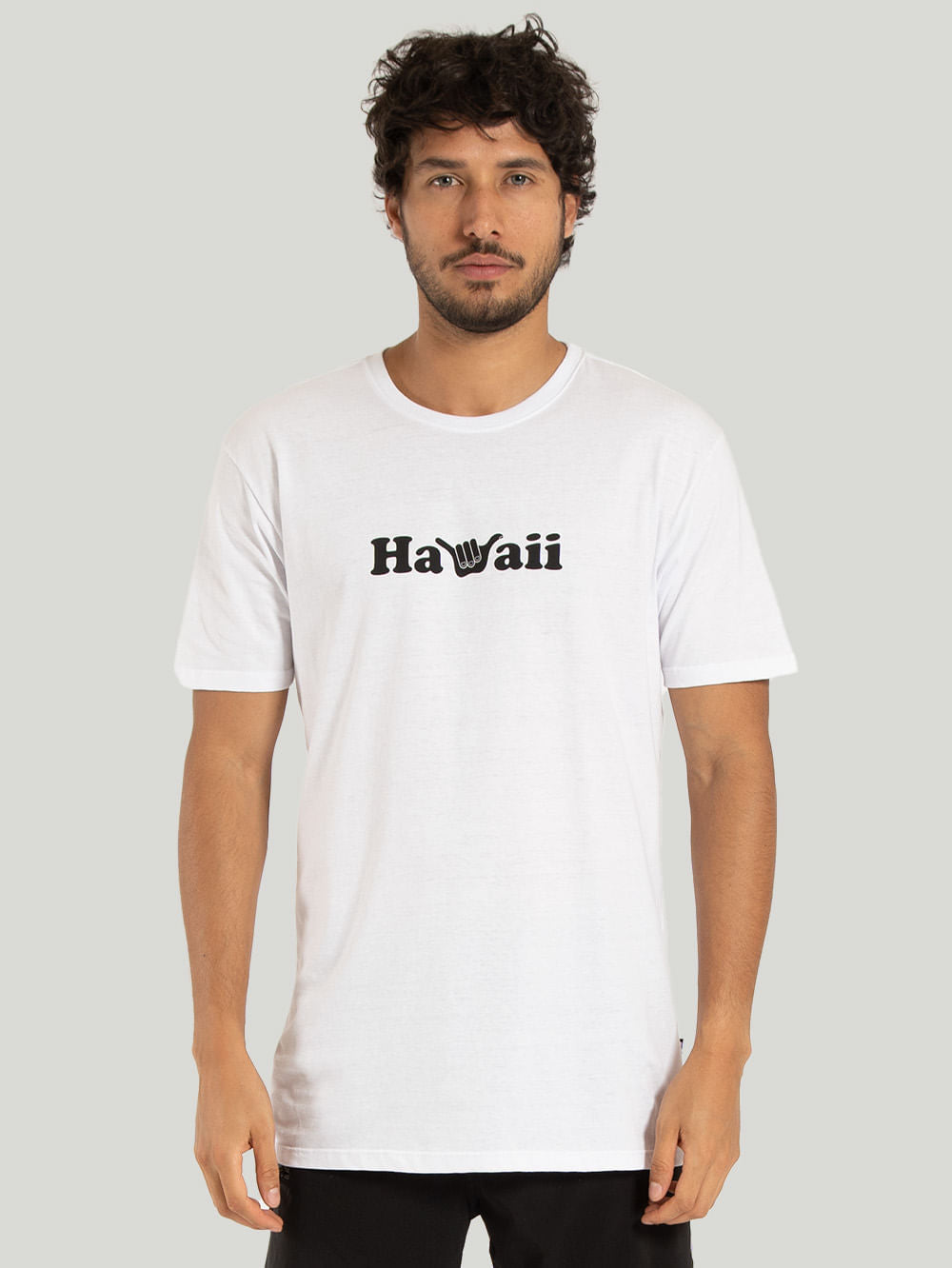 Nossa Camiseta Hang Loose Hawaii é feita em ½ malha 30/1, possui silk frontal em cor única e etiqueta Hang Loose.