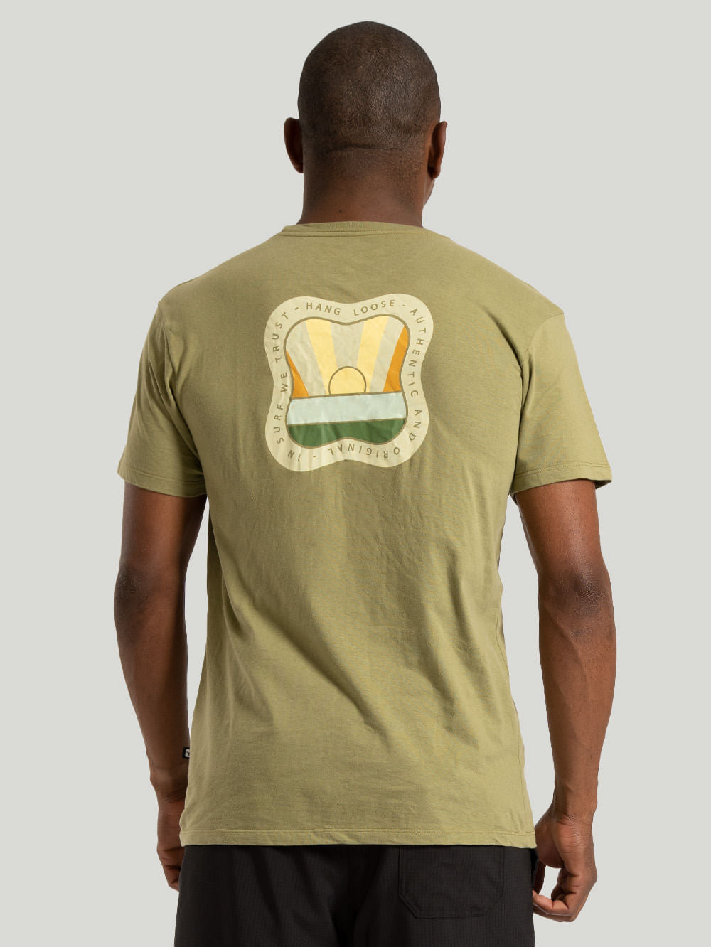 A Camiseta Hang Loose Laplaya é feita em 1/2 malha 30/1, possui silk frontal de cor única, silk nas costas de 5 cores e etiqueta Hang Loose.