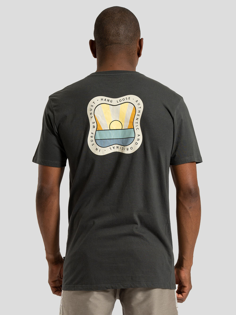 A Camiseta Hang Loose Laplaya é feita em 1/2 malha 30/1, possui silk frontal de cor única, silk nas costas de 5 cores e etiqueta Hang Loose.