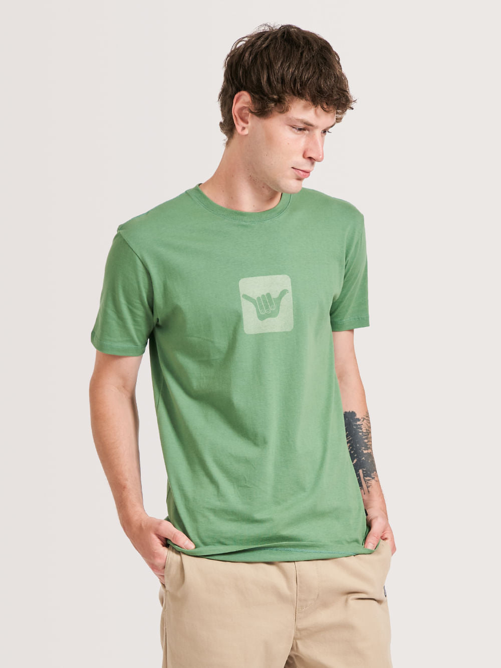 Camiseta Hang Loose Logo Verde. Confeccionada em meia malha de algodão, a camiseta Logo possui silk frontal e etiqueta Hang Loose.