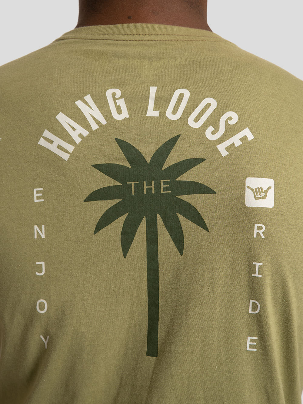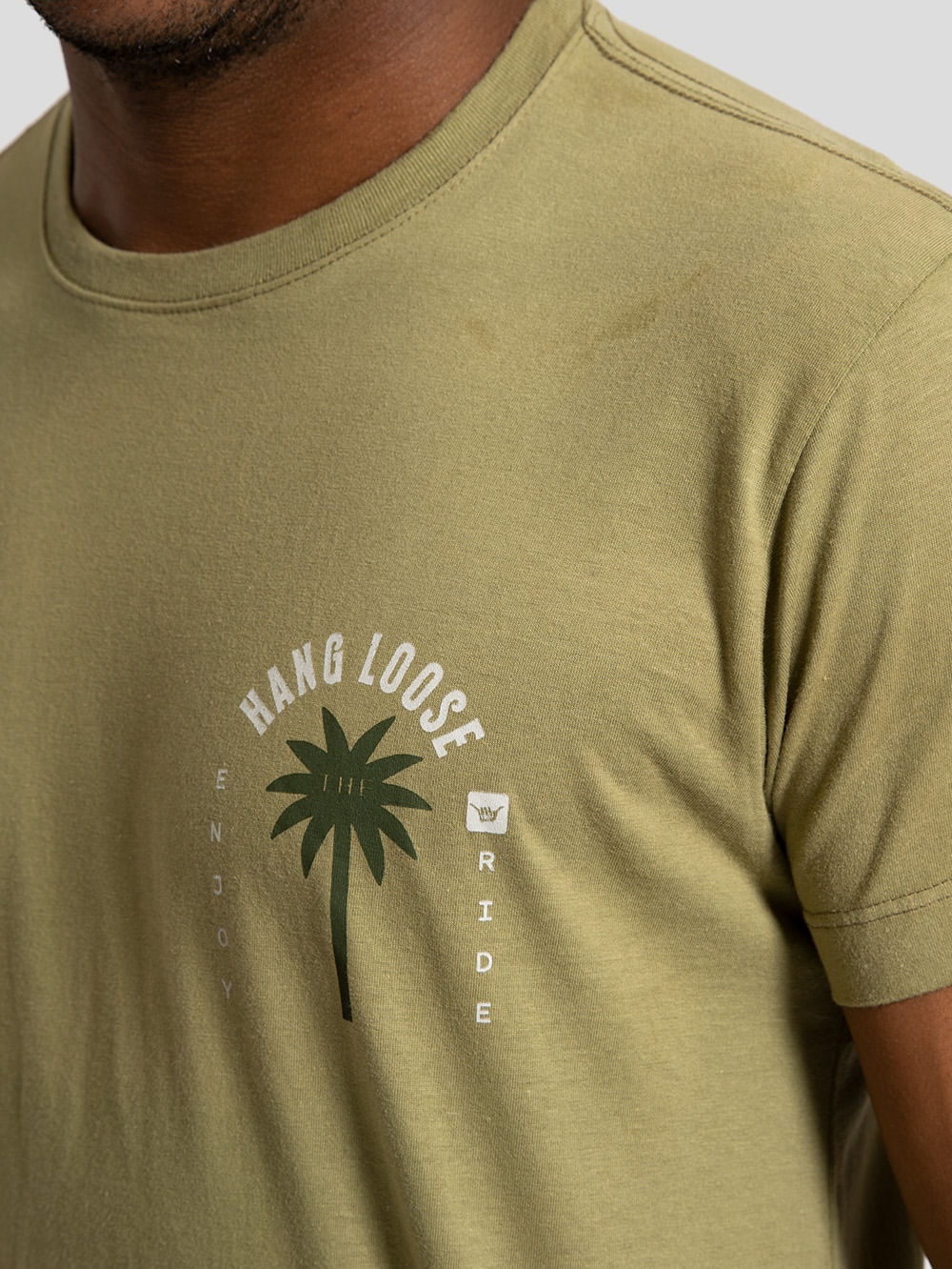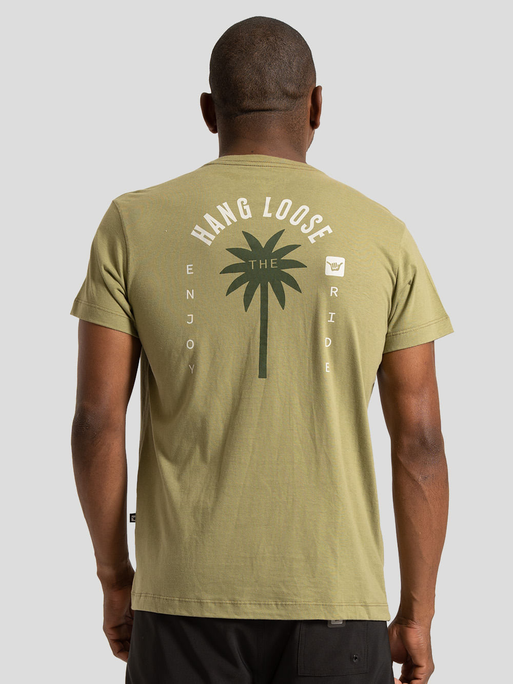 A Camiseta Hang Loose Nuts Verde é feita em ½ malha 30/1, possui silk frontal e nas costas em 2 cores e etiqueta Hang Loose.
