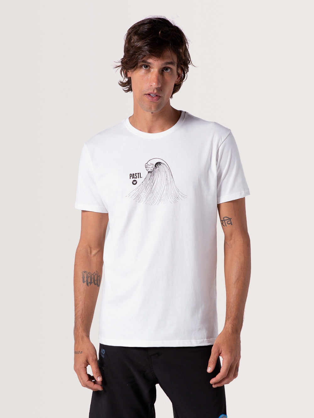 Camiseta Hang Loose Pasti. Possui print interno e estampa em silk frontal e nas costas.