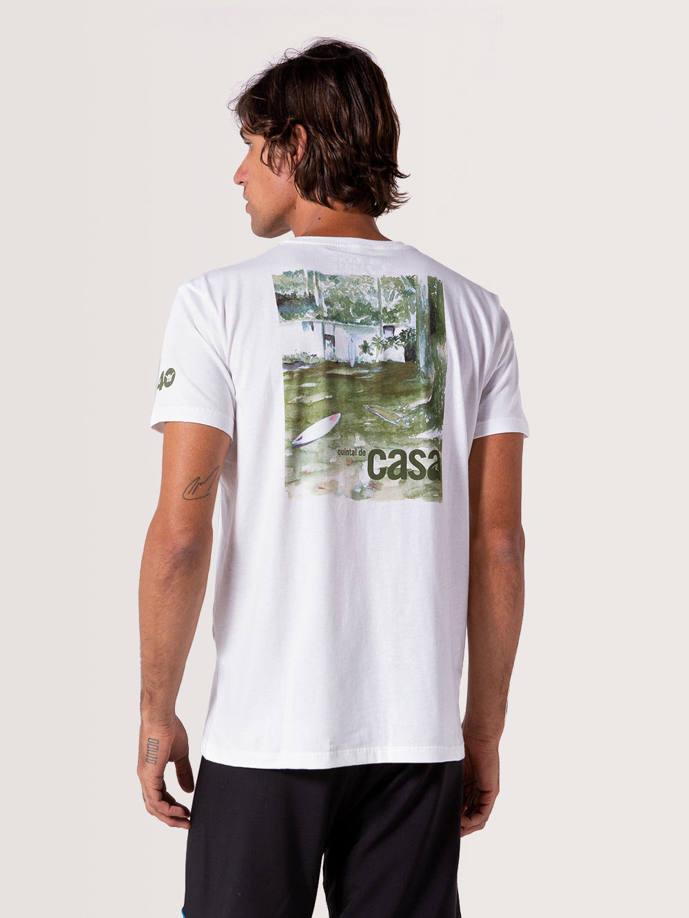Camiseta Hang Loose Quintal De Casa. Possui print interno e estampa em silk frontal, costas e nas mangas.