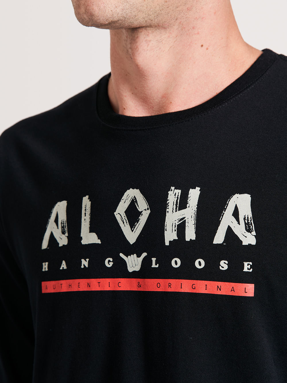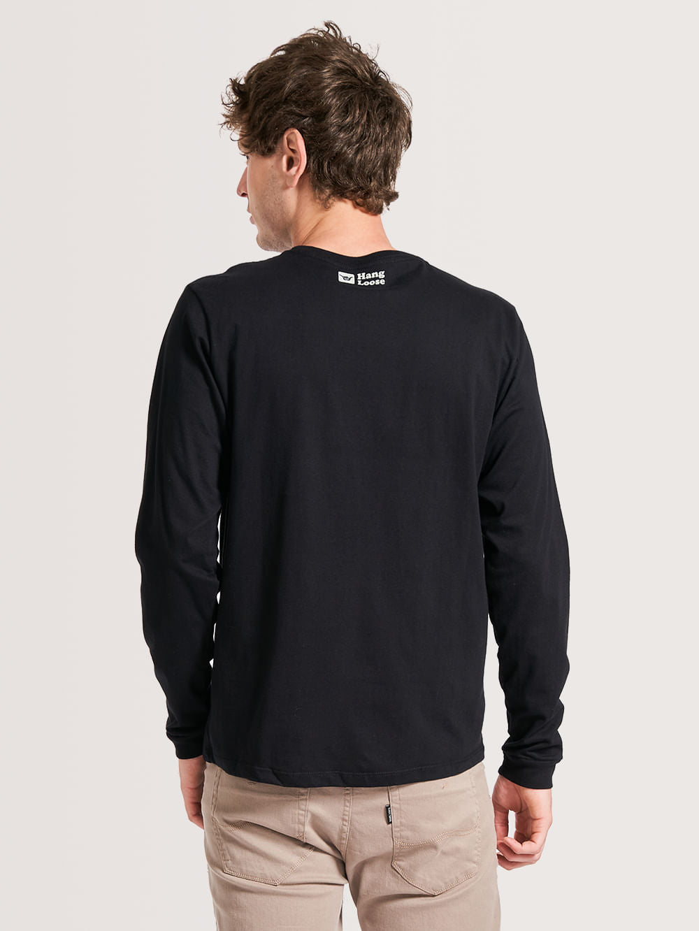 Camiseta Manga Longa Hang Loose Aloha Preta