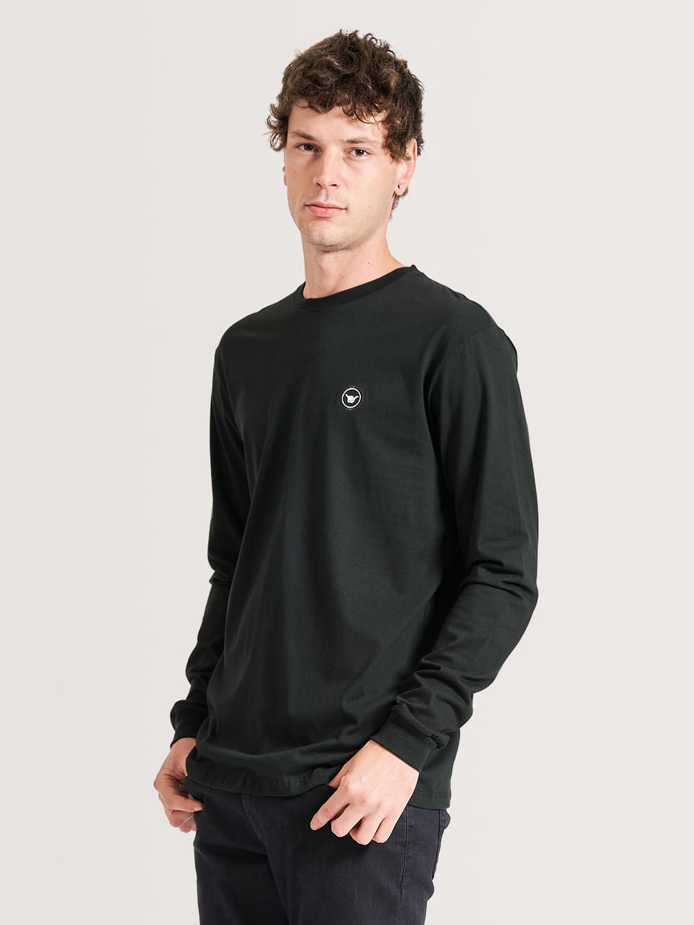 Camiseta Manga Longa Hang Loose Clean, possui etiqueta aplicada no peito, punho na manga e etiqueta Hang Loose aplicada na lateral.
