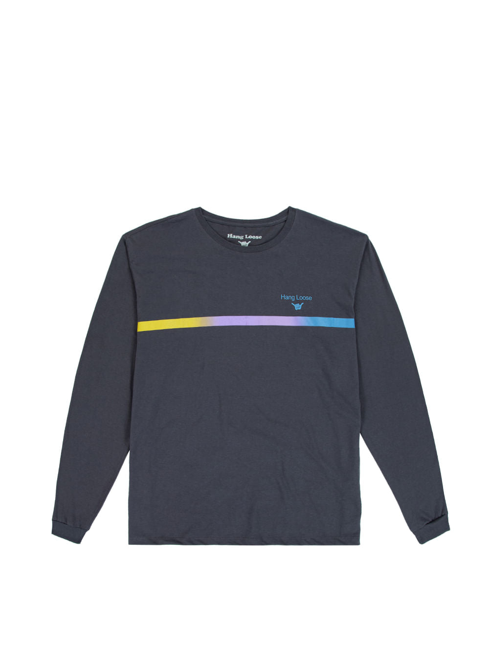 Camiseta Hang Loose Manga Longa Gradient Chumbo. Confeccionada em meia malha de algodão, possui silk frontal e na manga.