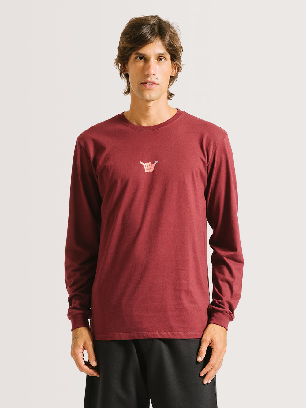 Camiseta Manga Longa Hang Loose Wax, possui estampa em silk frontal e nas costas degradê, punho na manga e etiqueta Hang Loose aplicada na lateral. Confeccionada em tecido algodão.