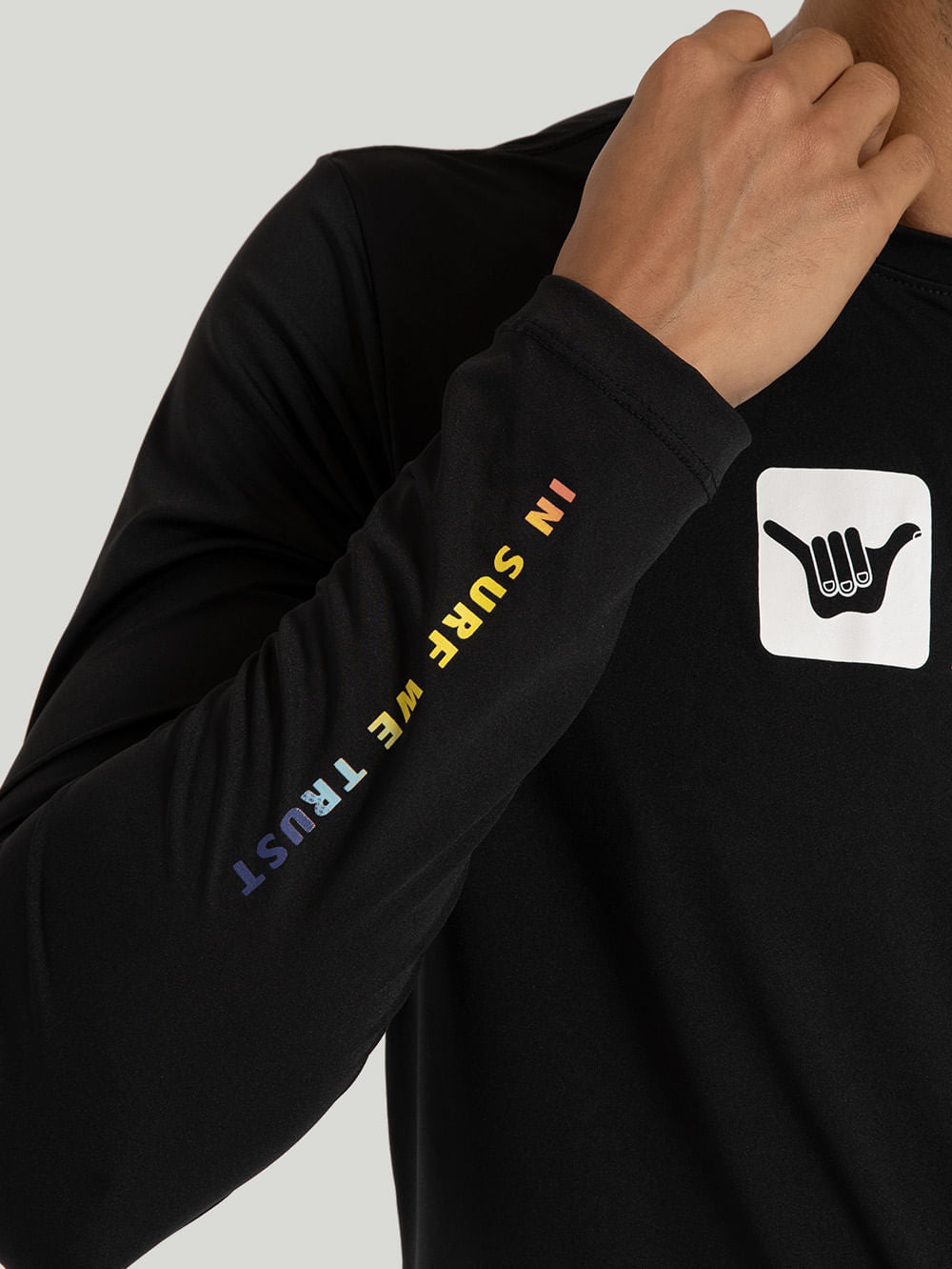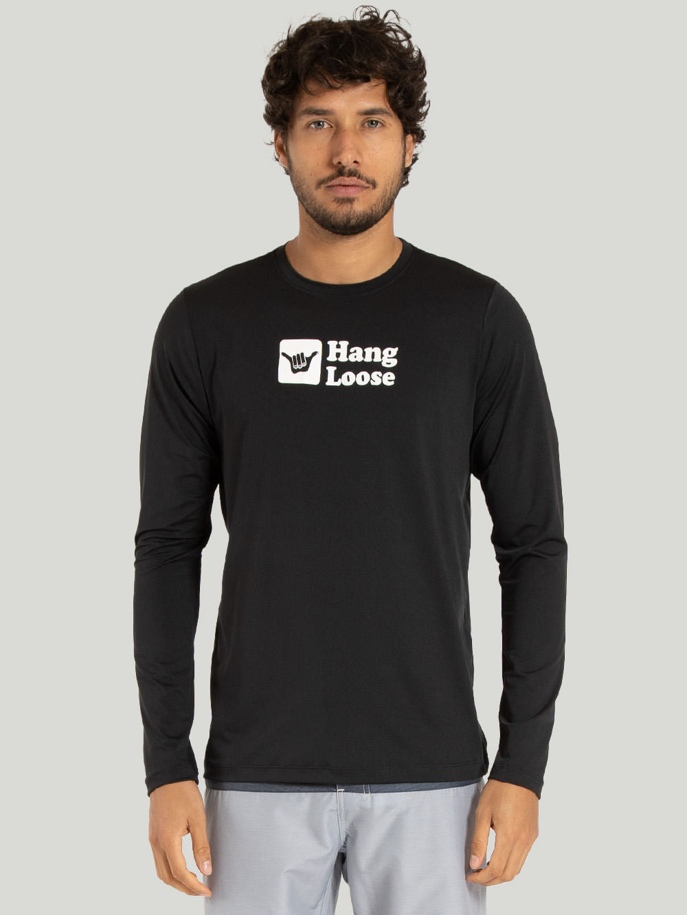 Nossa Lycra Hang Loose Blacks, confeccionada em malha active ice uv 50. Possui estampa na frente, costas e nas mangas.