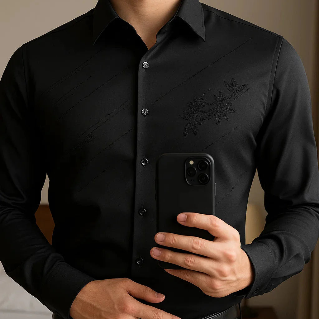Essa camisa é feita para homem que não se contenta com pouco. 92,5% Seda Natural de Amoreira, somada ao reforço estratégico de Poliéster e Rayon. Veste no corpo, valoriza o porte, transmite postura e mostra que você é diferente. O caimento é firme, o toque é superior, o brilho é sóbrio. Aqui não tem conversa mole, só respeito.