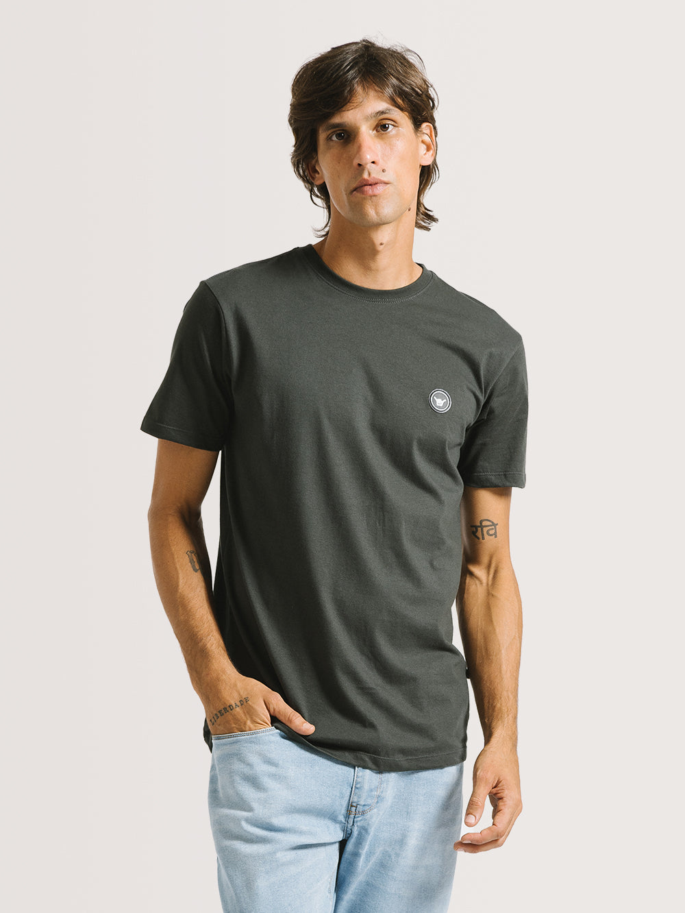 Camiseta Hang Loose Logolabel, possui etiqueta redonda aplicada na parte frontal e etiqueta Hang Loose na lateral. Confeccionada em tecido meia malha 30/1.