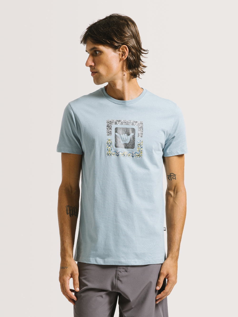Camiseta Hang Loose Logosquare, possui estampa em silk frontal e na nuca e etiquetas Hang Loose. Confeccionada em tecido meia malha 30/1.