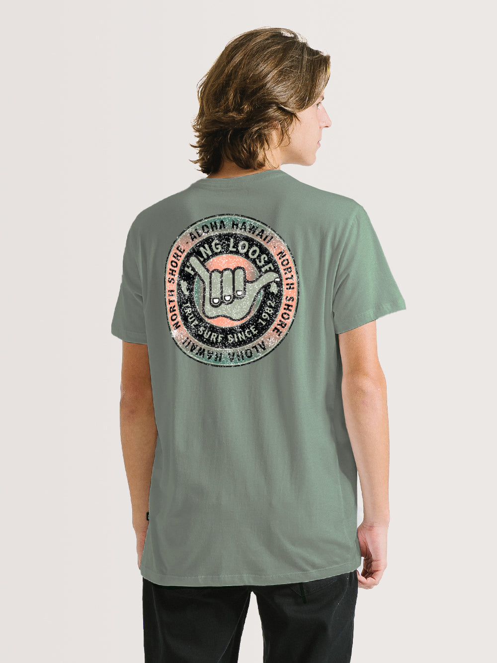 Camiseta Hang Loose Wax, possui estampa em silk frontal e nas costas e etiquetas Hang Loose. Confeccionada em tecido meia malha 30/1.