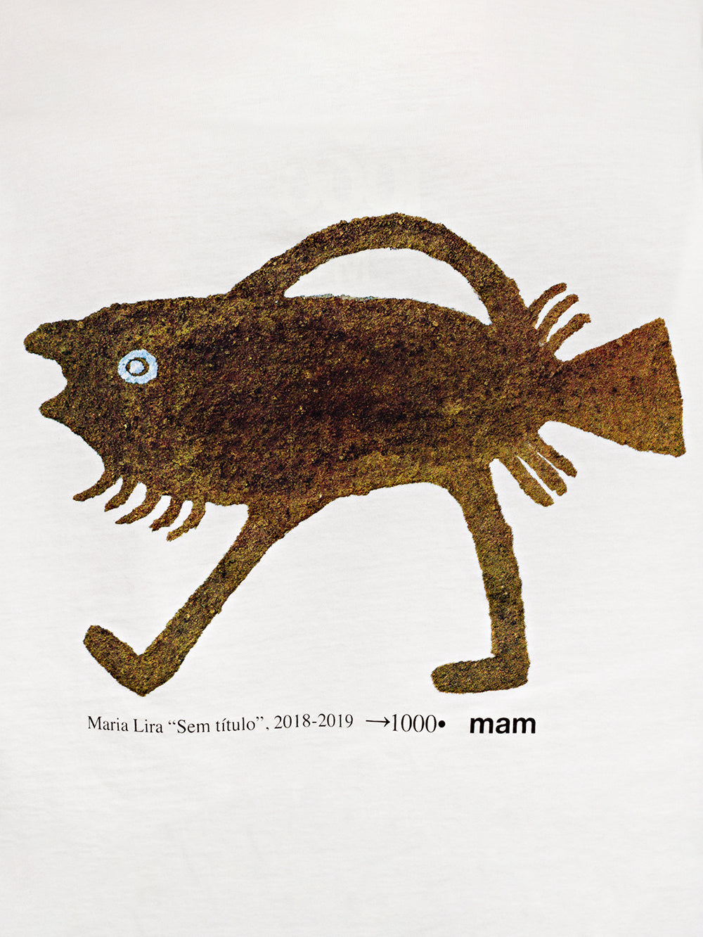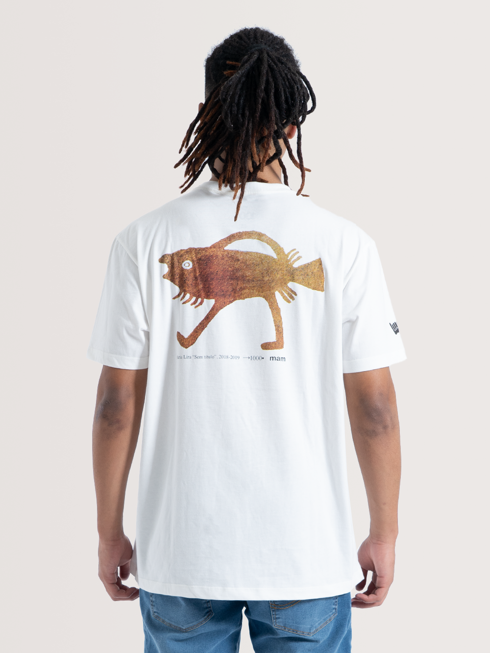 A Camiseta Hang Loose x Mam Maria Lira apresenta uma estampa exclusiva de sua obra ""Sem Título"", criada entre 2018 e 2019. Confeccionada em meia malha ecológica, a peça alia arte contemporânea e sustentabilidade.