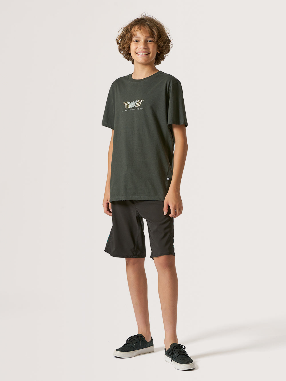Camiseta Juvenil Hang Loose Echo, possui estampa em silk frontal e na nuca e etiquetas Hang Loose. Confeccionada em tecido meia malha 30/1.