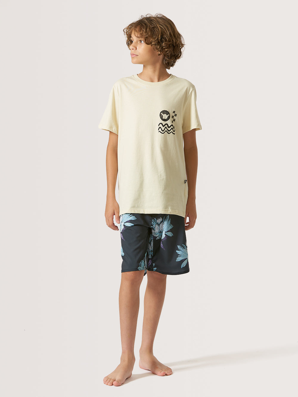 Camiseta Juvenil Hang Loose Elements, possui estampa em silk frontal e nas costas e etiqueta Hang Loose na lateral. Confeccionada em tecido meia malha 30/1.