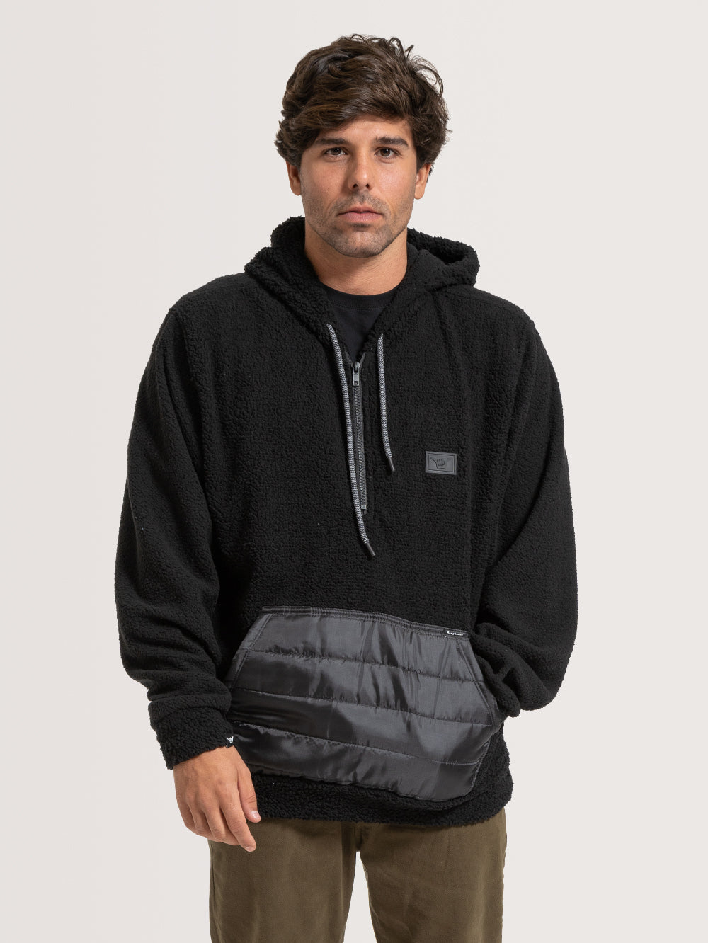 - Tecido carneiro com bolso canguru em nylon matelassê