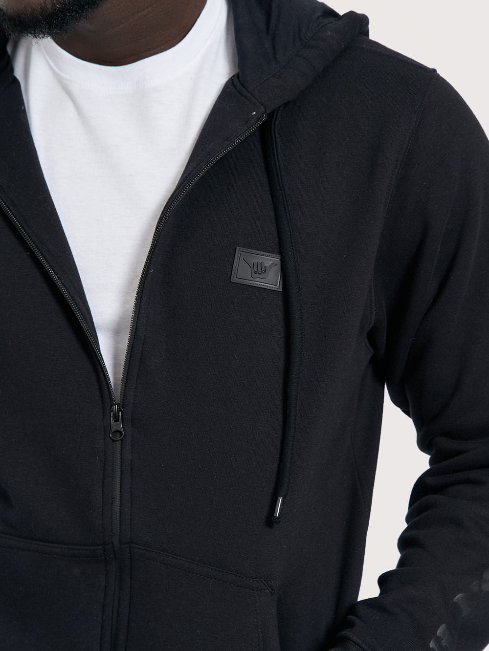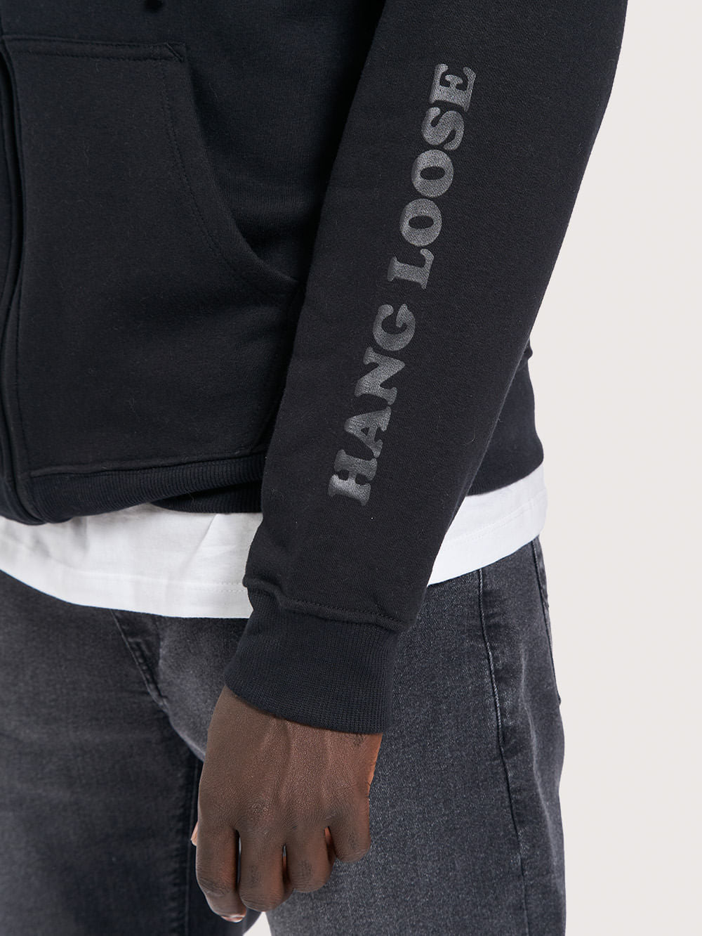Moletom Canguru Hang Loose Sleeve, possui capuz, bolso canguru, etiqueta de borracha no peito, abertura frontal com zíper, estampa em silk na manga, ilhós e ponteira personalizada e aplicação de etiqueta nas costas. Confeccionado em tecido felpado 320 gramas.