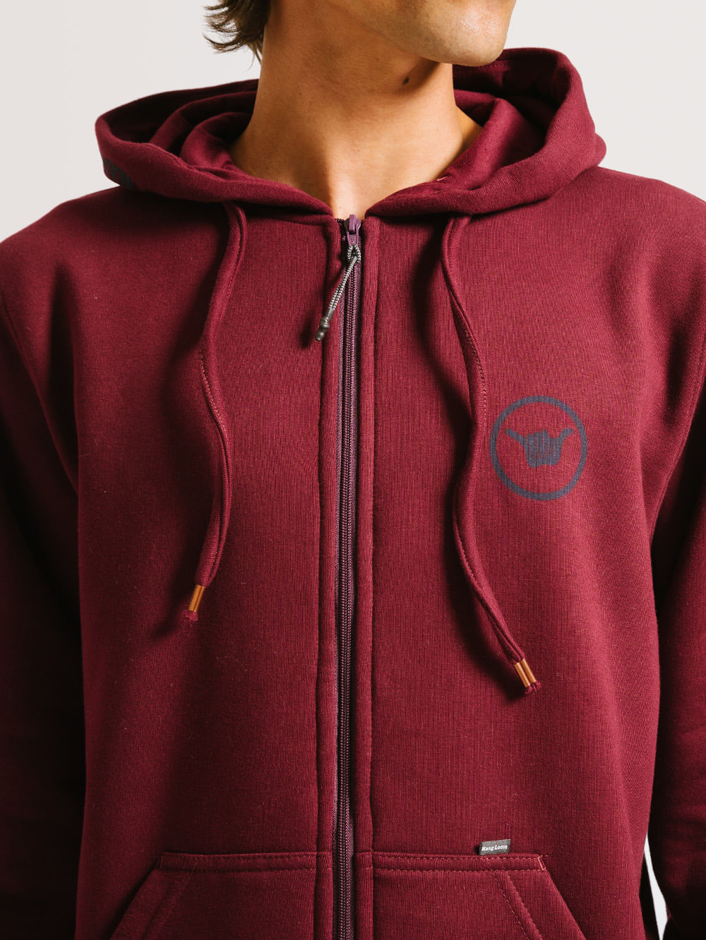 Moletom Canguru Hang Loose Sun, possui capuz, bolso canguru, abertura frontal com zíper, estampa em silk frontal e nas costas, ilhós e ponteira personalizados e aplicação de etiqueta nas costas. Confeccionado em tecido felpado 320 gramas.
