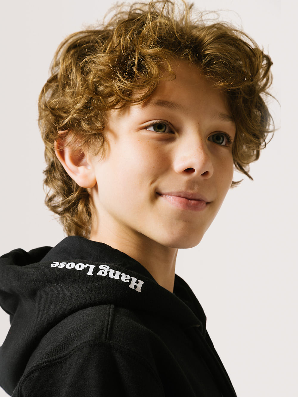 Moletom Canguru Hang Loose Logo Juvenil. Possui estampa em silk frontal e no capuz, bolso canguru, ilhós e ponteira personalizada, aplicação de etiqueta nas costas e etiquetas Hang Loose. Confeccionado em tecido felpado 320gramas.