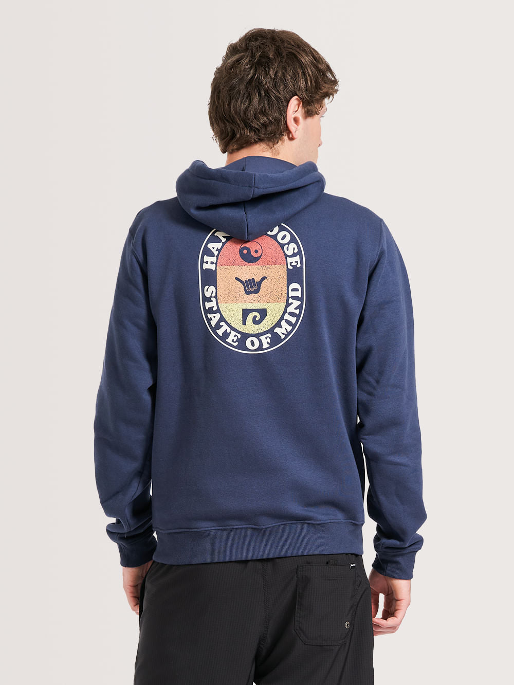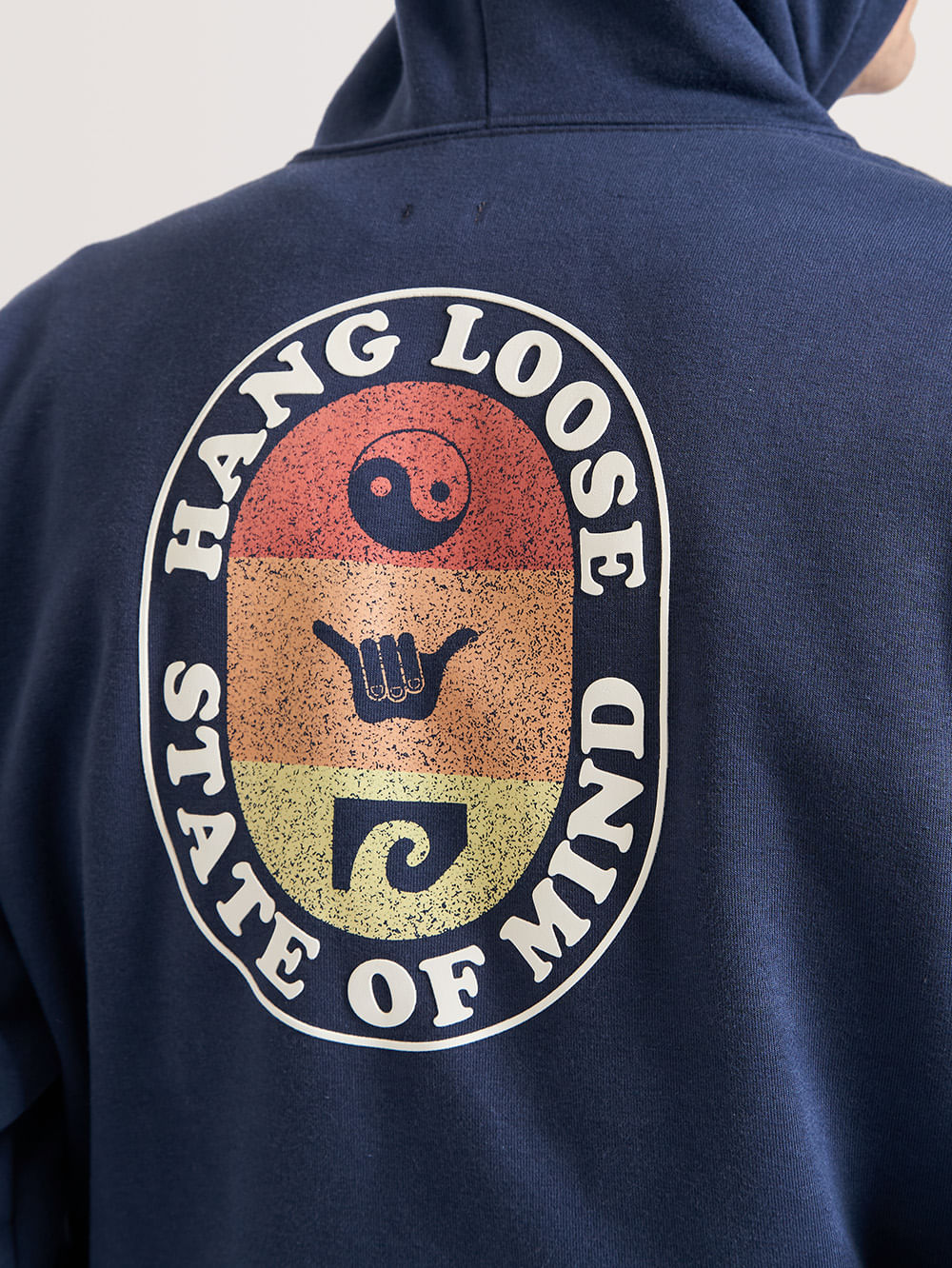 Moletom Canguru Hang Loose Yin, possui capuz, bolso canguru, estampa em silk frontal e nas costas, ilhós e ponteira personalizada e aplicação de etiqueta nas costas. Confeccionado em tecido felpado 320 gramas.