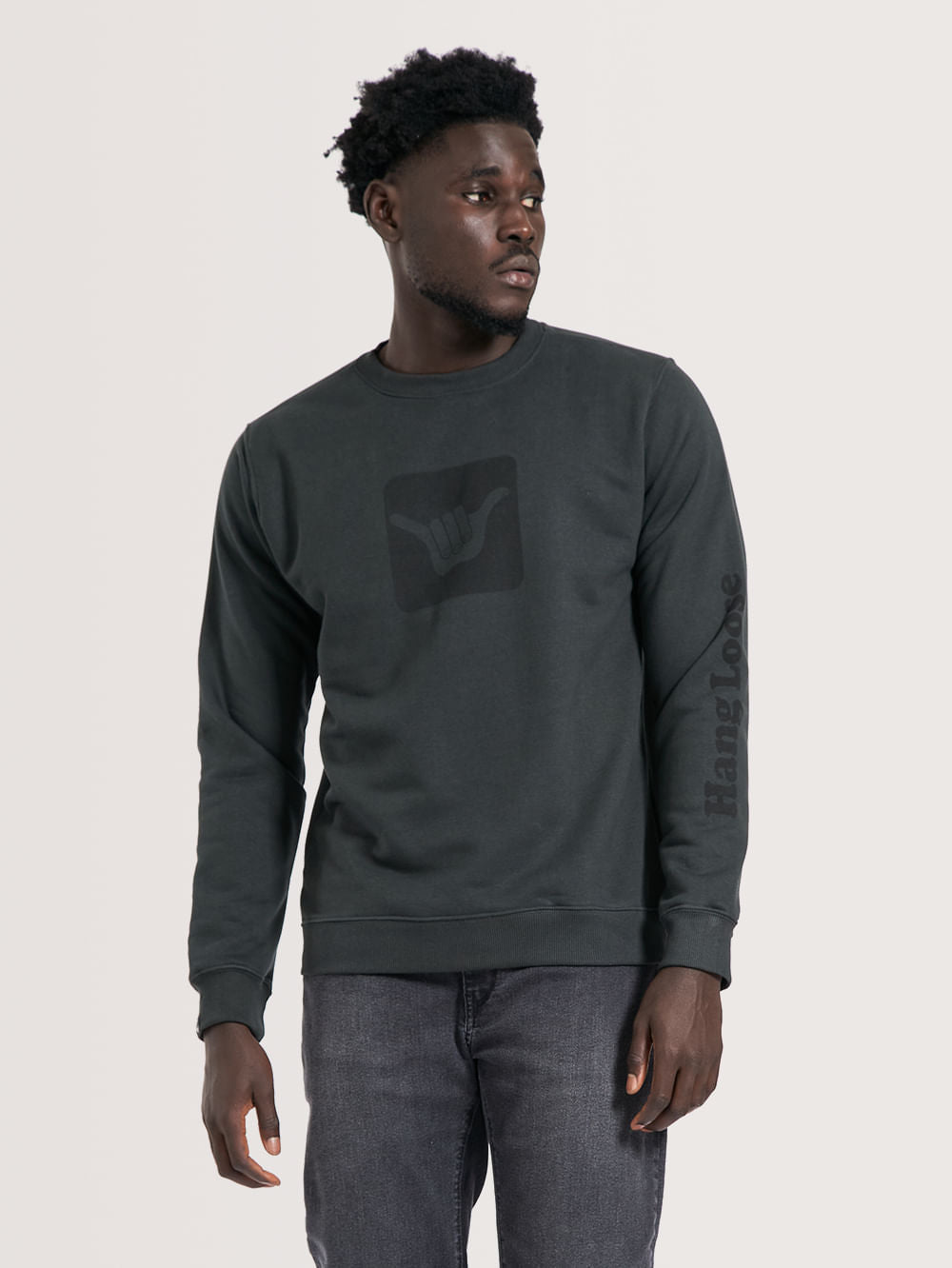 Moletom Careca Hang Loose Logo, possui modelagem básica, estampa em silk frontal e na manga e etiqueta Hang Loose. Confeccionado em tecido felpado 320 gramas.