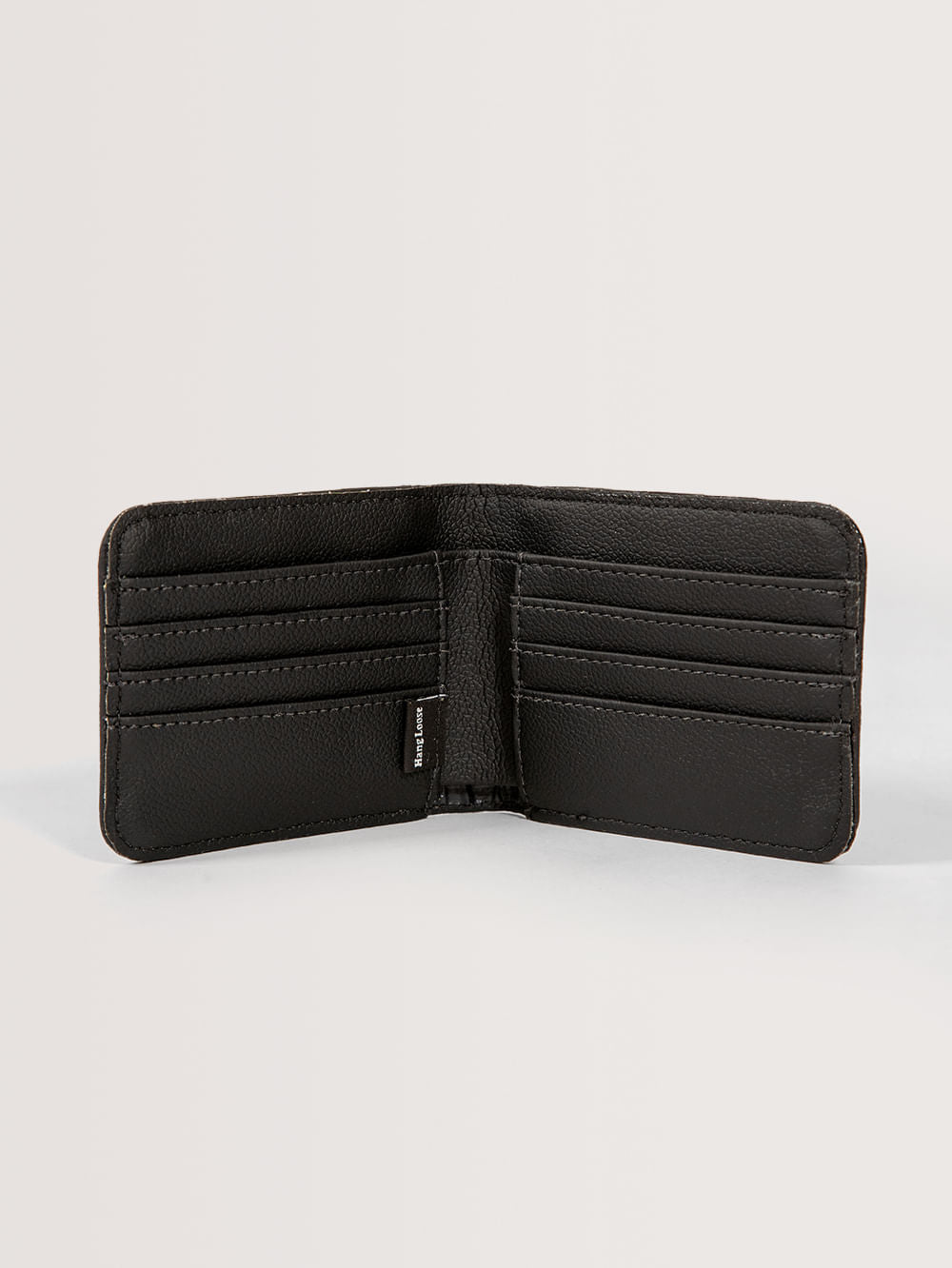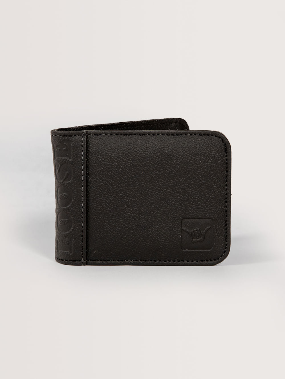 Carteira Hang Loose Banner, possui recorte com letra em baixo relevo, clichê do logo, porta cartões, porta notas e aplicação de etiqueta interna. Confeccionada em pvc e poliéster.