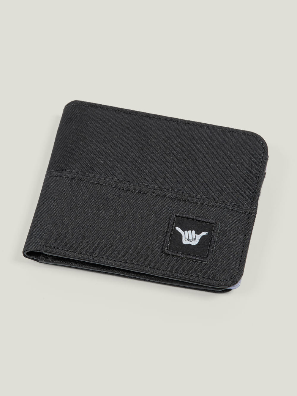 Carteira Hang Loose Basic, possui porta cartões, porta notas, clichê logo interno e aplicação externa de metal Hang Loose. Confeccionada em pvc e poliéster.