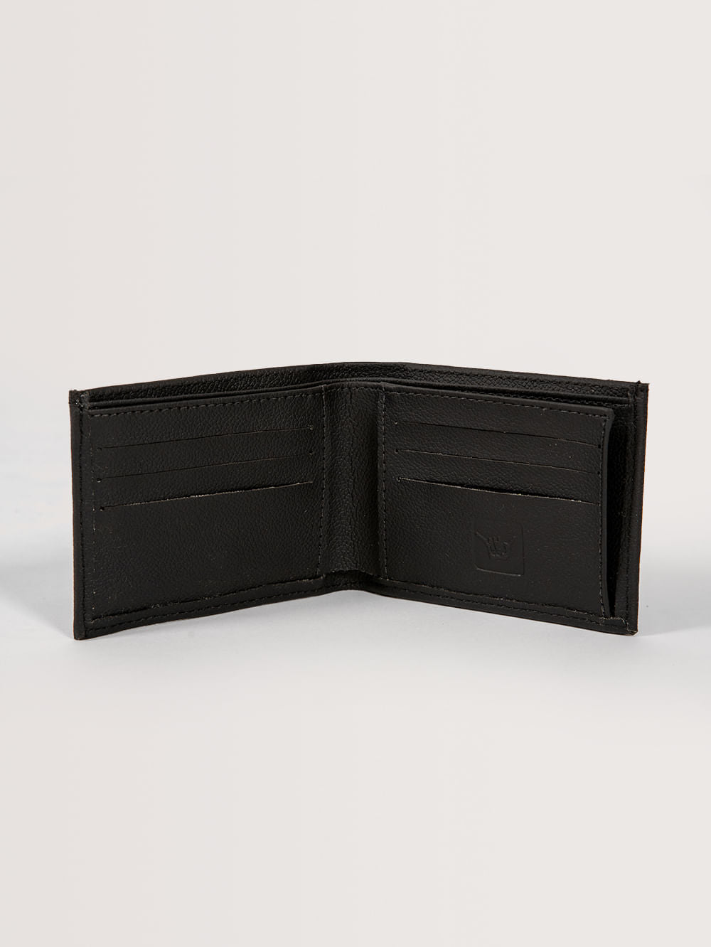 Carteira Hang Loose Basic, possui porta cartões, porta notas, clichê logo interno e aplicação externa de metal Hang Loose. Confeccionada em pvc e poliéster.