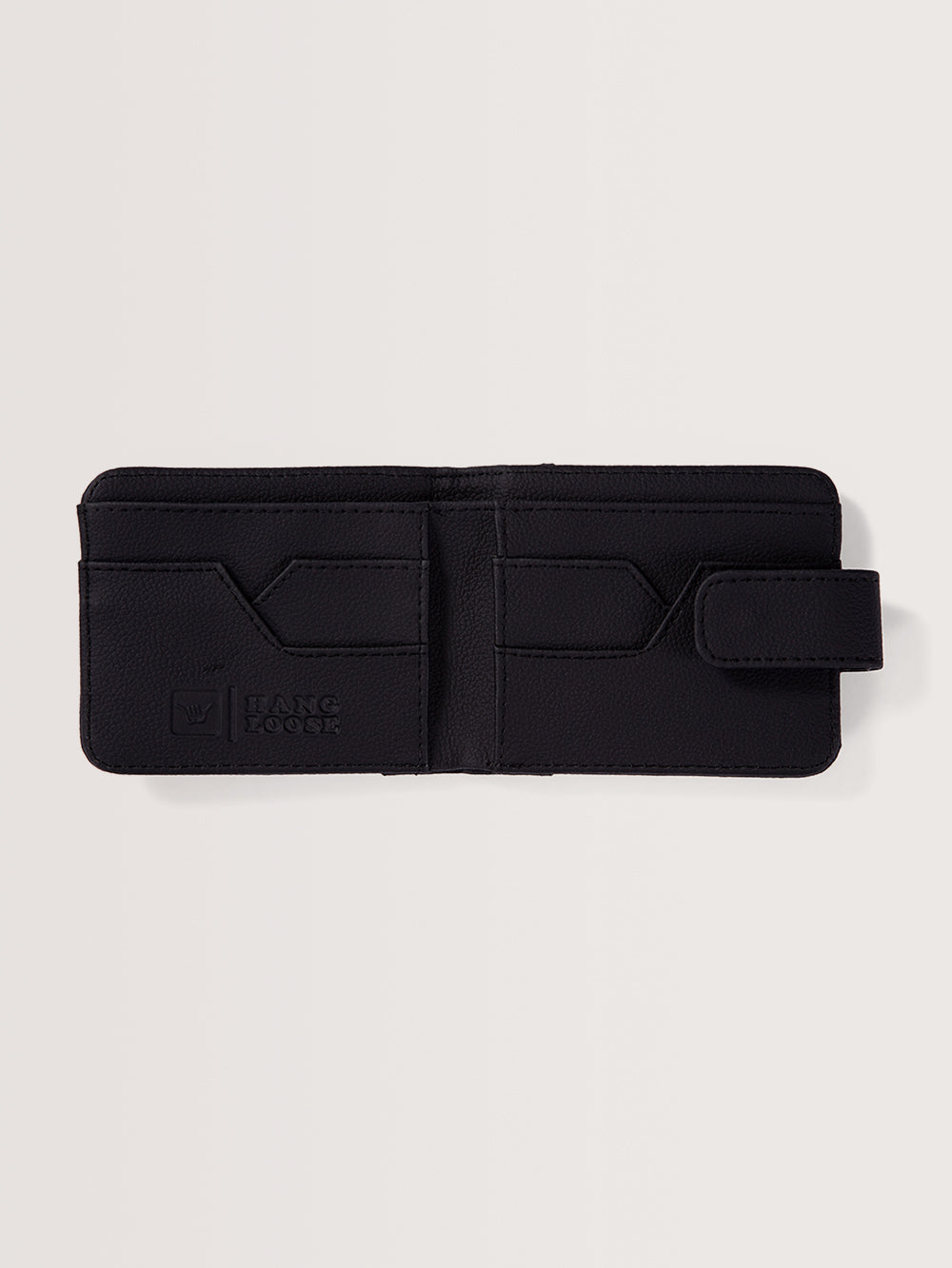 Carteira Hang Loose Button, possui fecho com botão de pressão encapado, placa de metal preto, print interno e porta cartão e notas.