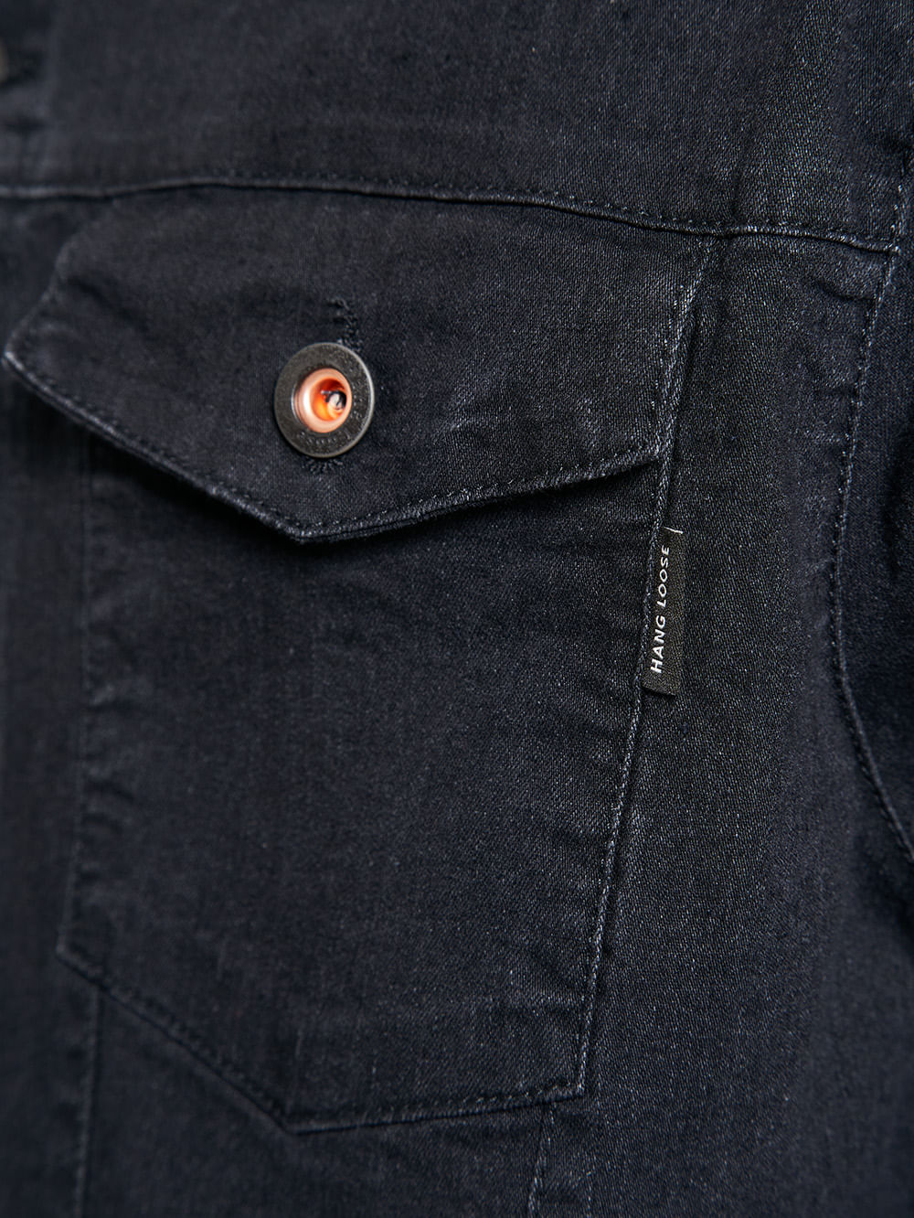 Jaqueta Jeans Hang Loose Black.Confeccionada em tecido algodão, poliéster e elastano, possui bolsos frontais e laterais, fechamento em botão e etiquetas Hang Loose.
