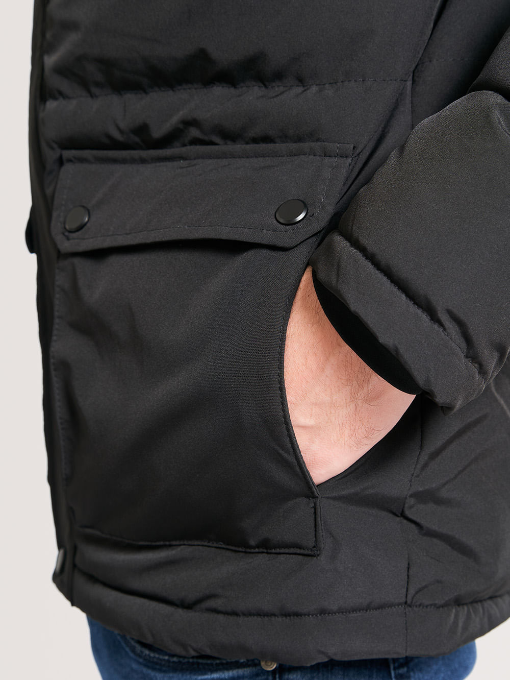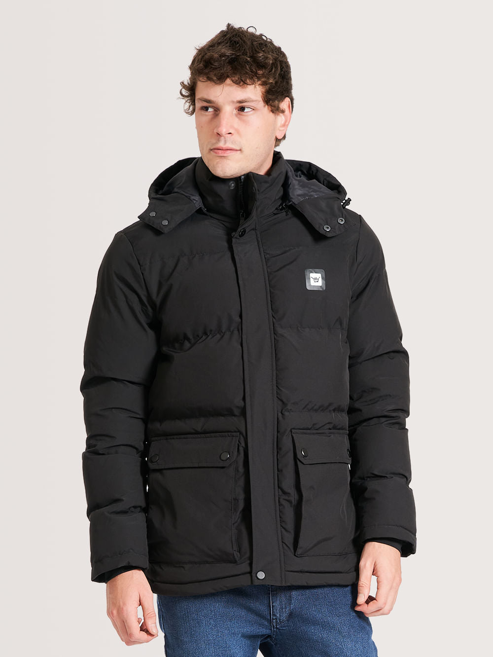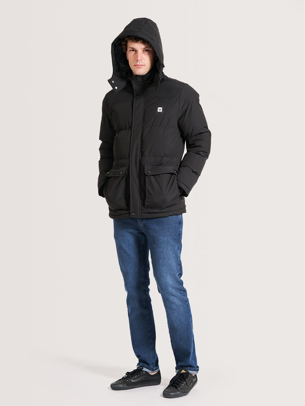 Jaqueta Hang Loose Cold. Confeccionada em poliéster e elastano, possui dois bolsos grandes frontais com fecho em botões e bolsos laterais, capuz, etiqueta frontal no peito e costas na lateral inferior, fecho em zíper frontal e botões.