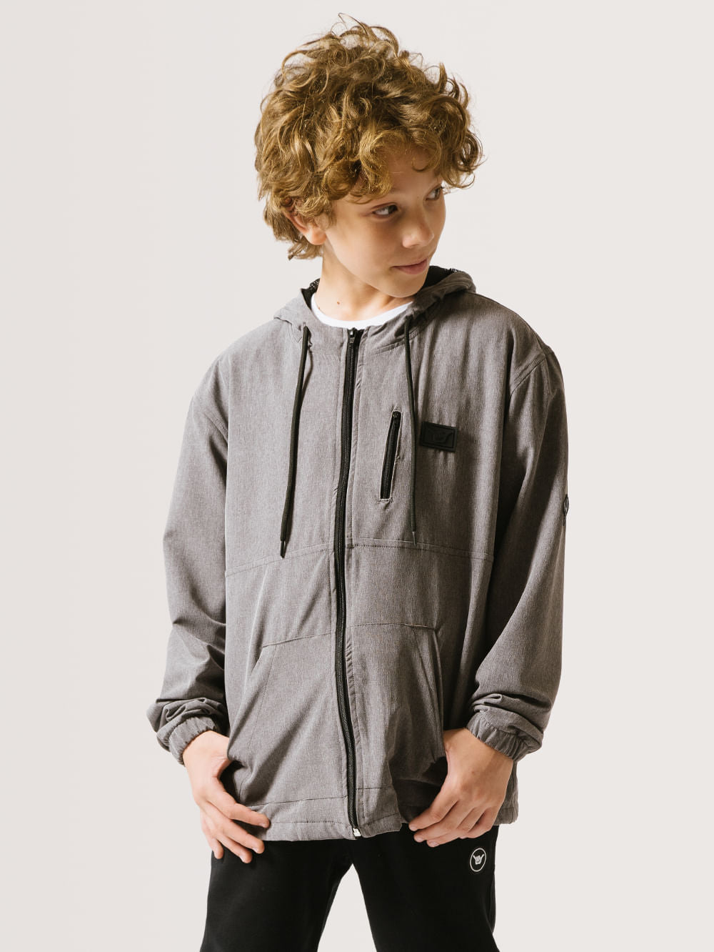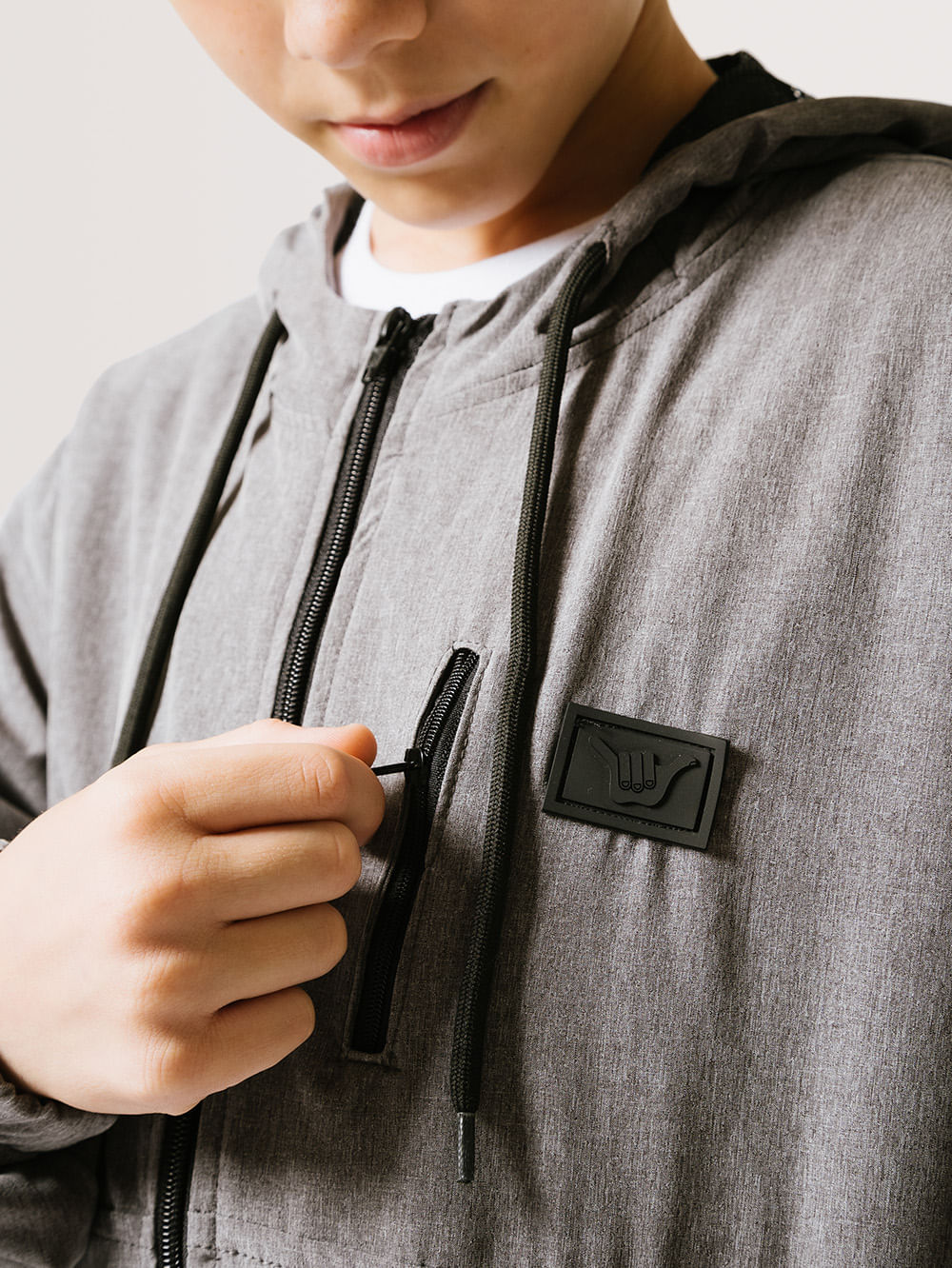 Jaqueta Hang Loose Lv Zip Juvenil. Possui etiqueta Hang Loose frontal, capuz, bolsos frontais e cordão de ajuste.