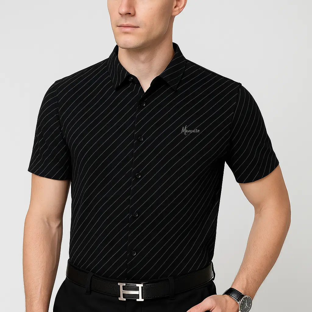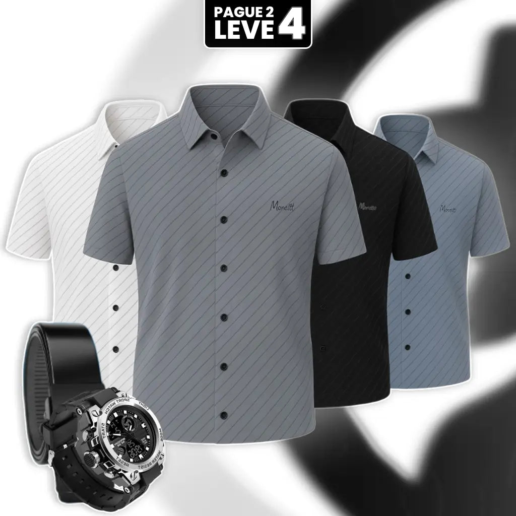Botões premium, costura reforçada, acabamento de alto padrão e certificação OEKO-TEX. Não é camisa de prateleira comum: é peça pensada pra durar anos, sem deformar, sem perder cor, sem perder estrutura. Praticidade total, porque já sai da máquina pronto pra usar. É o tipo de camisa que você veste e sente a diferença no primeiro toque.