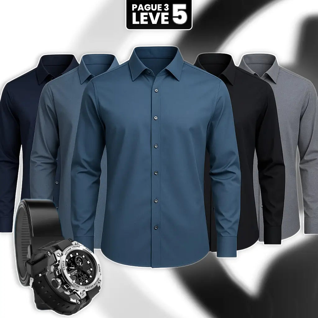 Sabe aquela camisa que parece feita sob medida? É isso aqui. Barra na medida, ombro bem encaixado, botões robustos e corte que valoriza o corpo — sem excesso, sem aperto. Postura reta, visual de respeito, presença garantida. Quem veste, sente a diferença na hora e não quer outra vida.