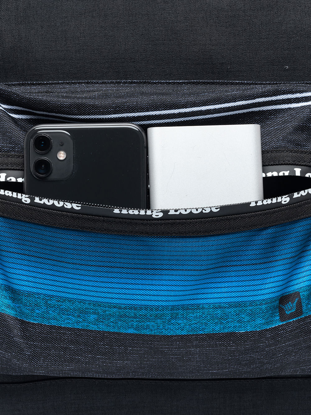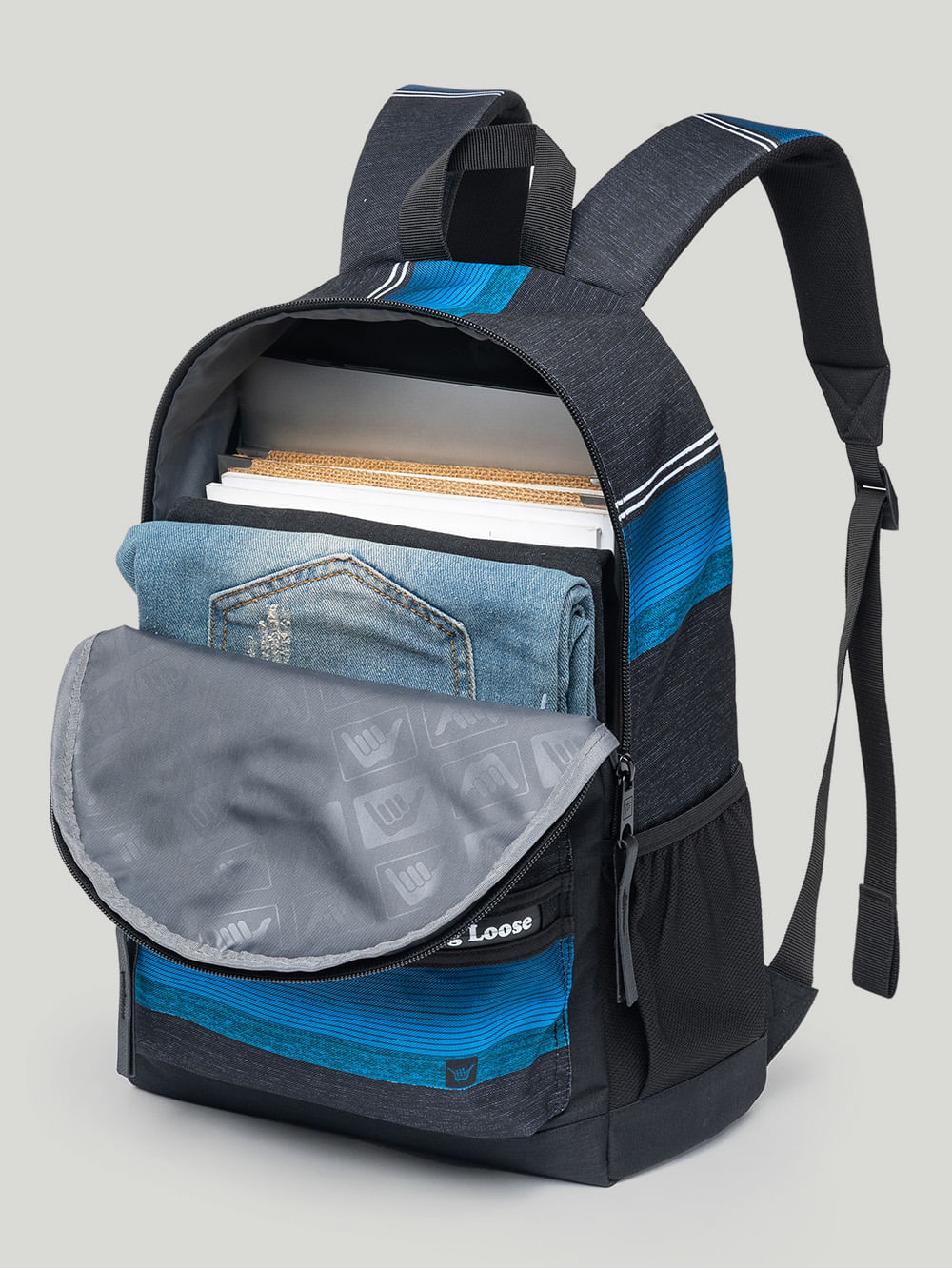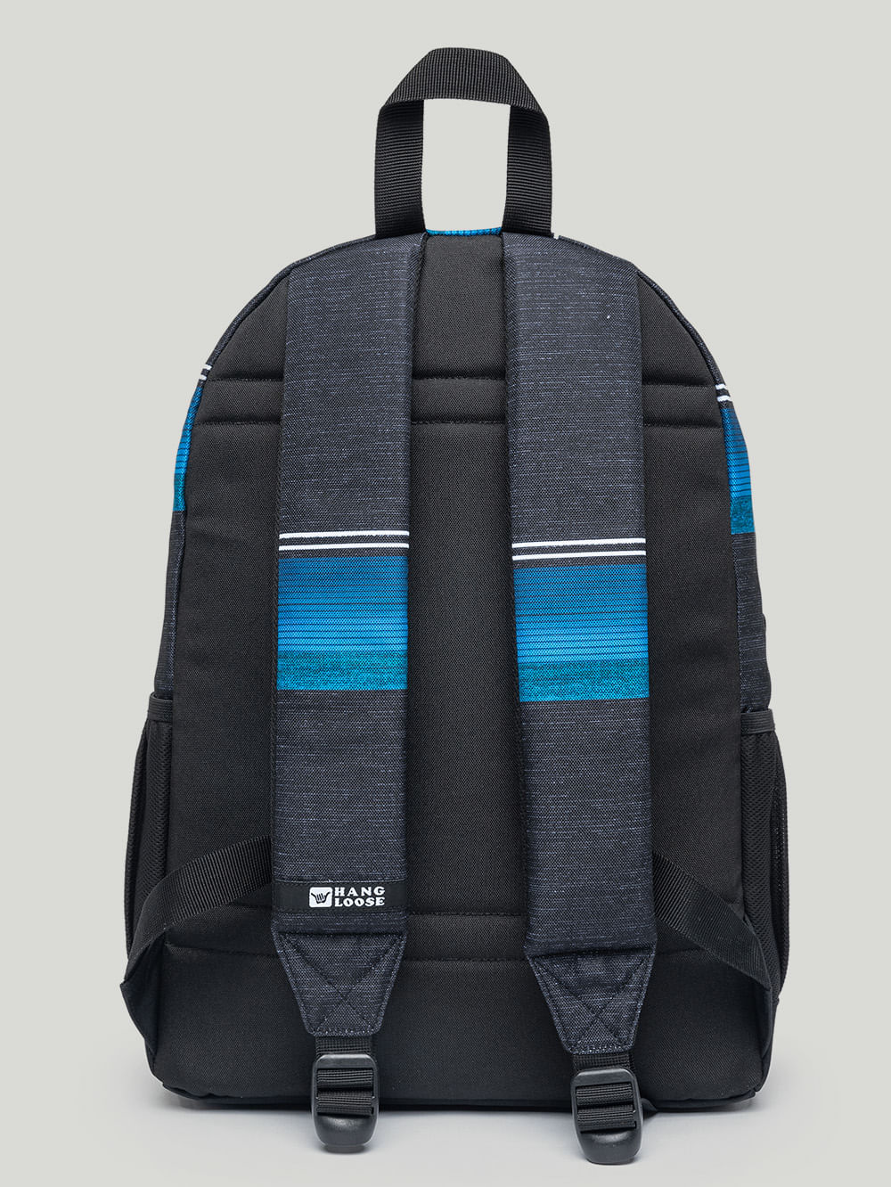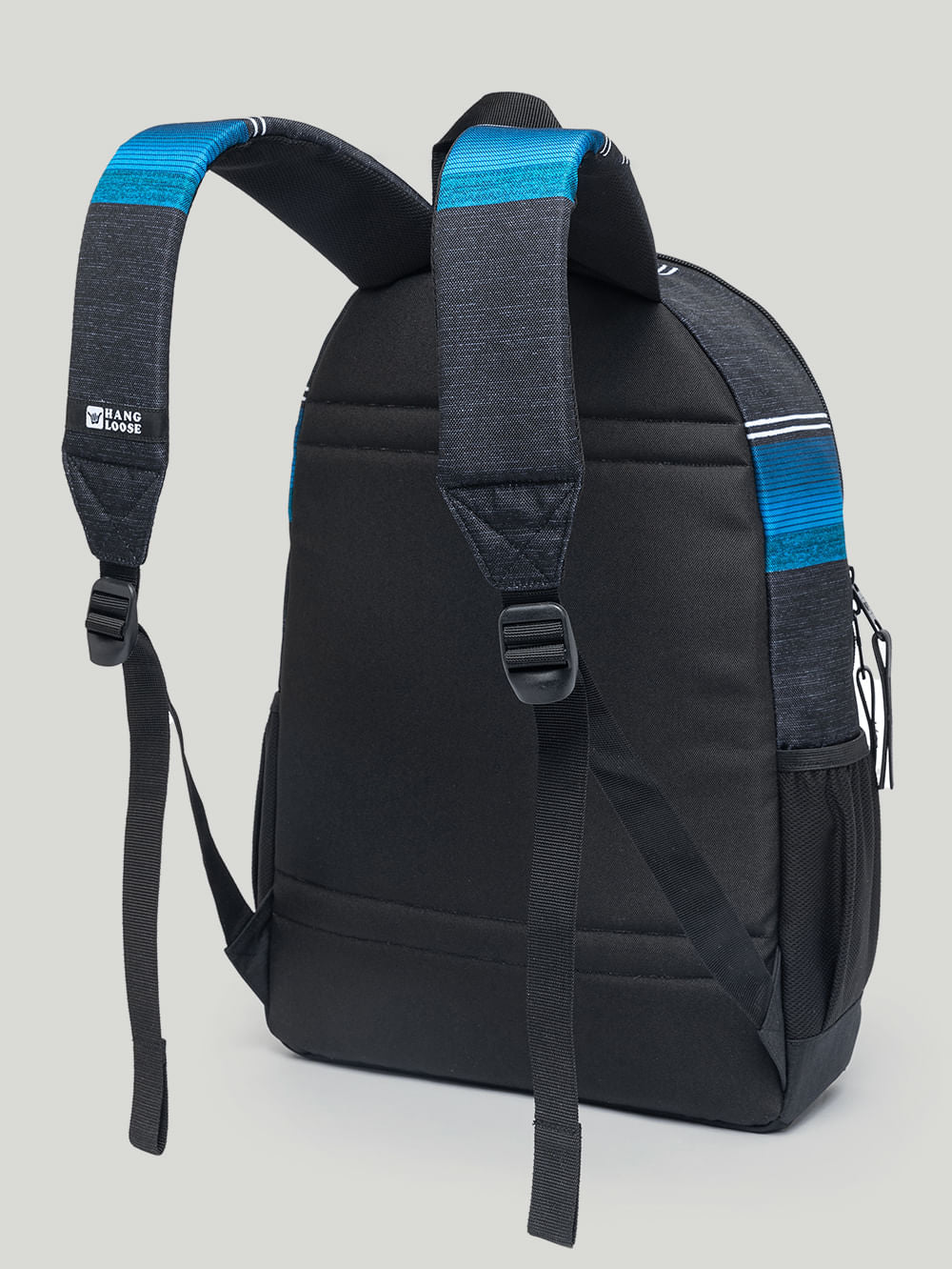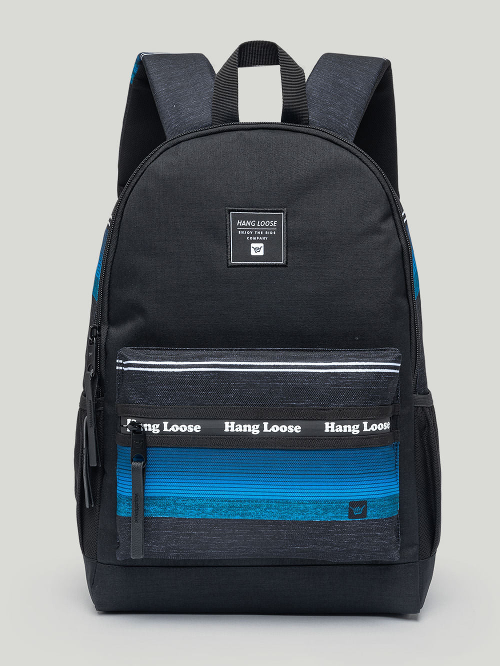 Mochila Hang Loose Blink Preta. Confeccionada em poliéster texturizado. Conta com zípers personalizados, compartilhamento para notebook até 15,5 polegadas, estampa Hang Loose frontal, aplicação de etiquetas e múltiplos bolsos. Possui 43 cm de altura, 30 cm de largura e 15 cm de profundidade, com capacidade de 19,5 litros.