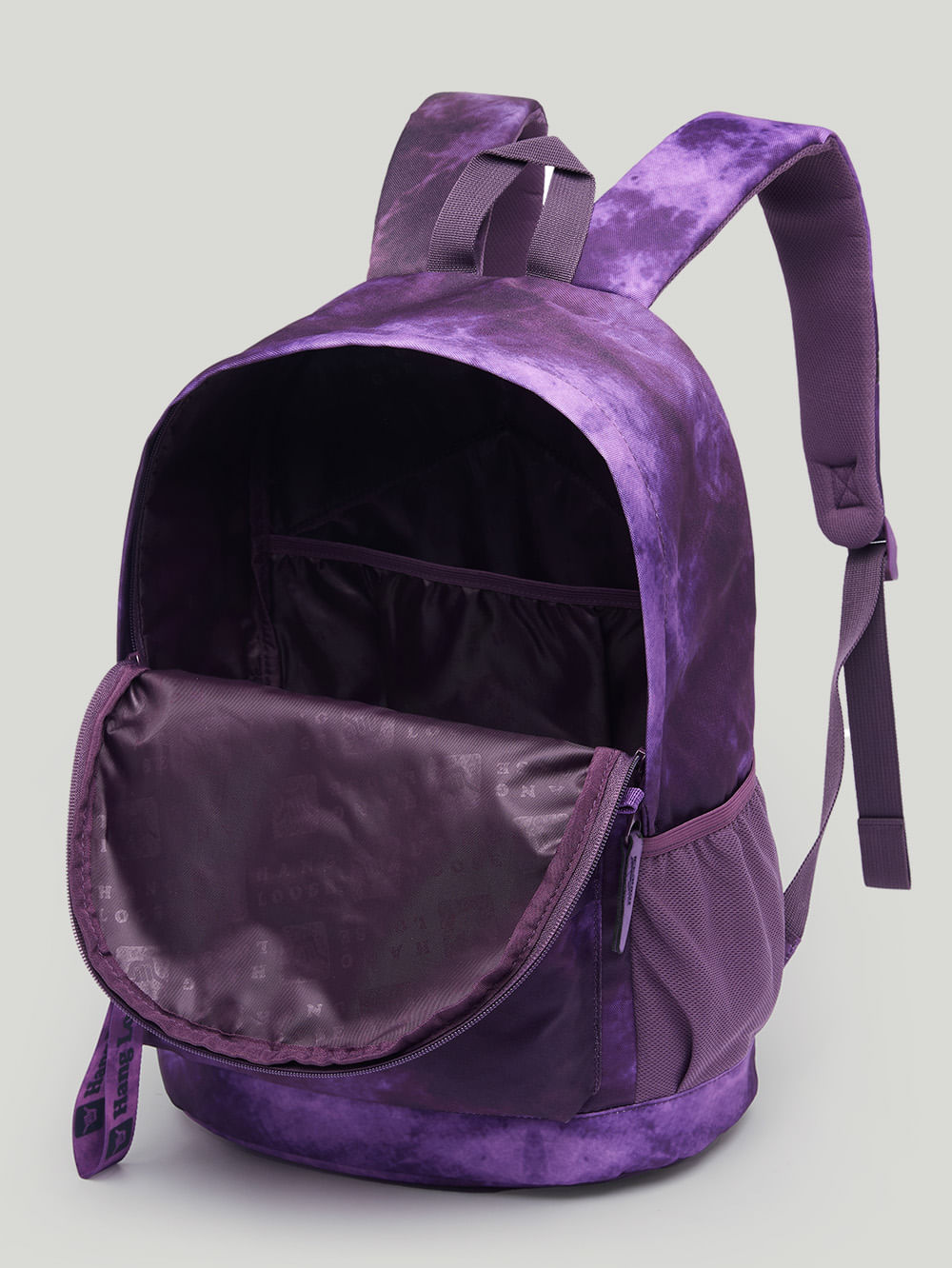 Mochila Hang Loose Tie Dye. Confeccionada em poliéster. Conta com zípers personalizados, compartilhamento para notebook até 15,5 polegadas, patch frontal, aplicação de etiquetas e múltiplos bolsos. Possui 43 cm de altura, 30 cm de largura e 14 cm de profundidade, com capacidade de 18 litros.